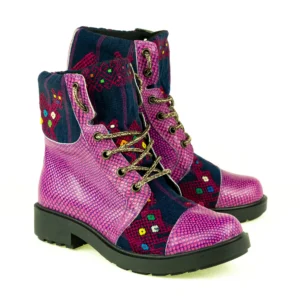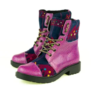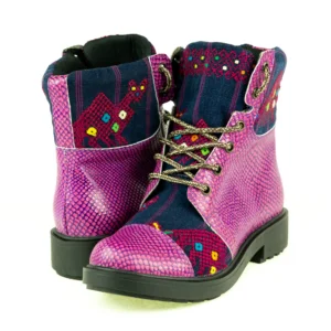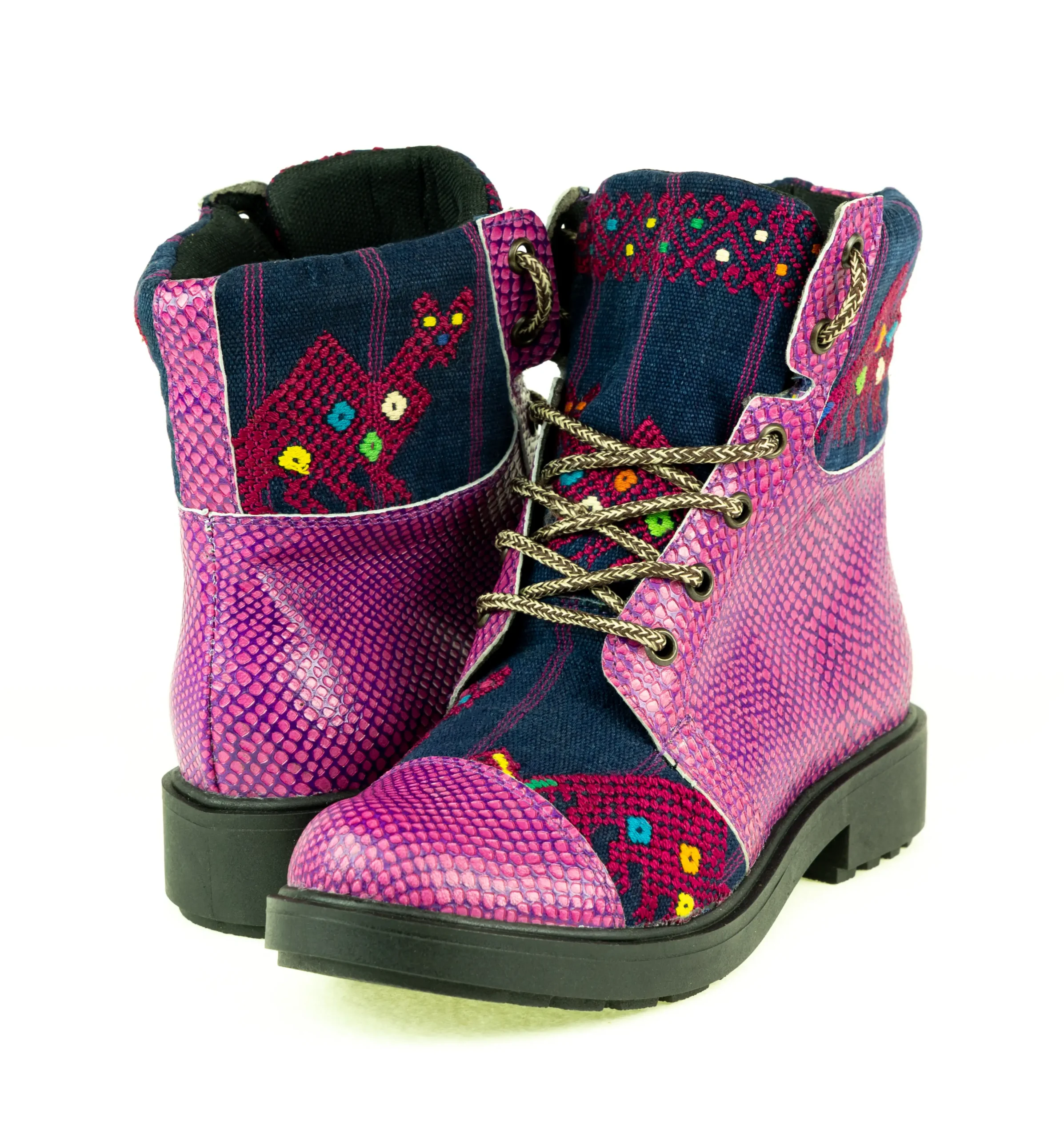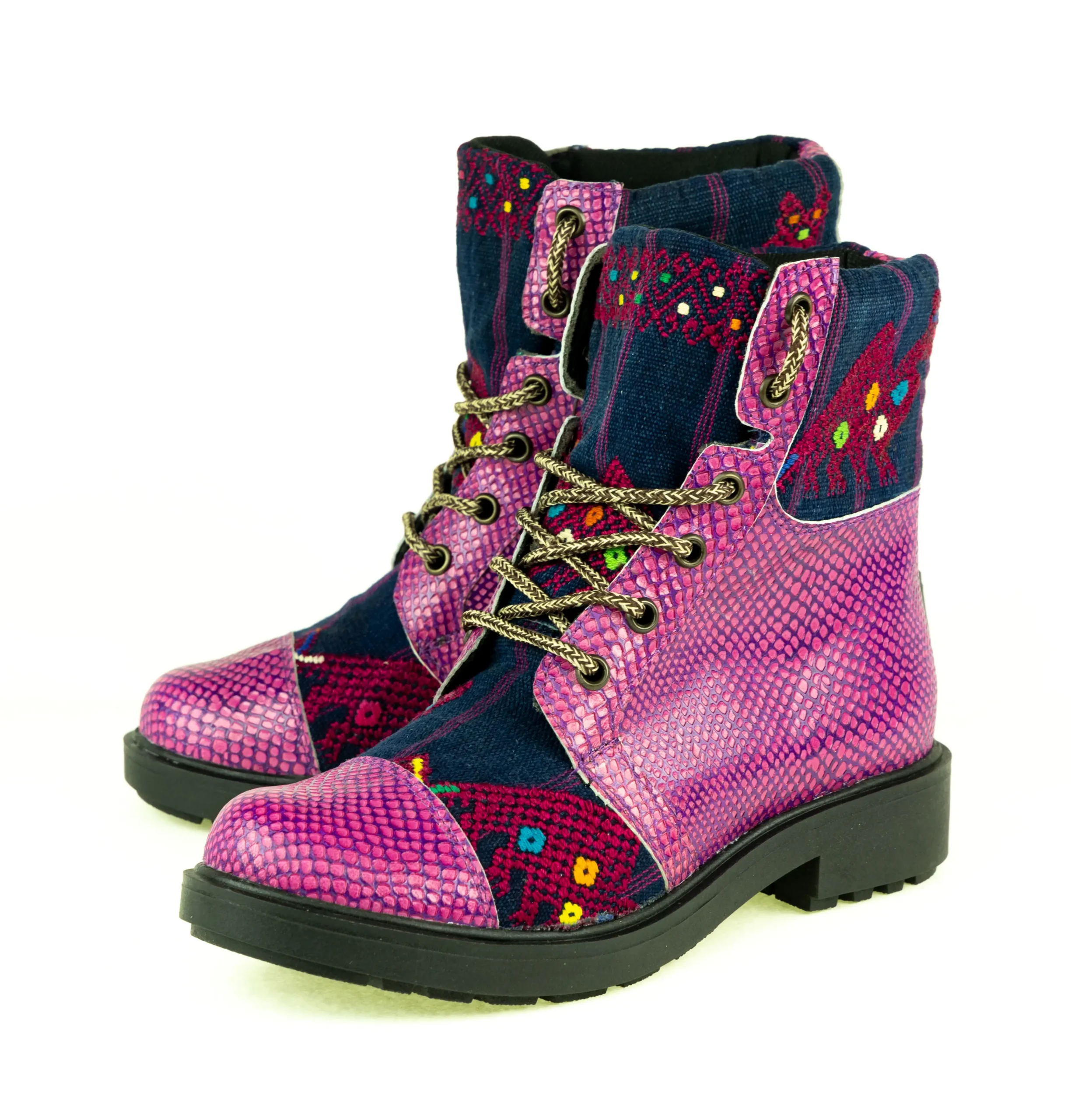 Pieza única e irrepetible. Bota minera de piel fusionada con auténtico textil maya tejido a mano en telar de cintura. Un diseño contemporáneo pensado para quienes valoran la moda consciente y buscan un estilo inigualable. Al ser una obra artesanal, no existe otro par igual en el mundo. Si es tu talla, es tu destino.
