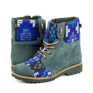 Pieza única e irrepetible. Bota minera de piel fusionada con auténtico textil maya tejido a mano en telar de cintura. Un diseño contemporáneo pensado para quienes valoran la moda consciente y buscan un estilo inigualable. Al ser una obra artesanal, no existe otro par igual en el mundo. Si es tu talla, es tu destino.