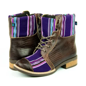 Pieza única e irrepetible. Bota minera de piel fusionada con auténtico textil maya tejido a mano en telar de cintura. Un diseño contemporáneo pensado para quienes valoran la moda consciente y buscan un estilo inigualable. Al ser una obra artesanal, no existe otro par igual en el mundo. Si es tu talla, es tu destino.