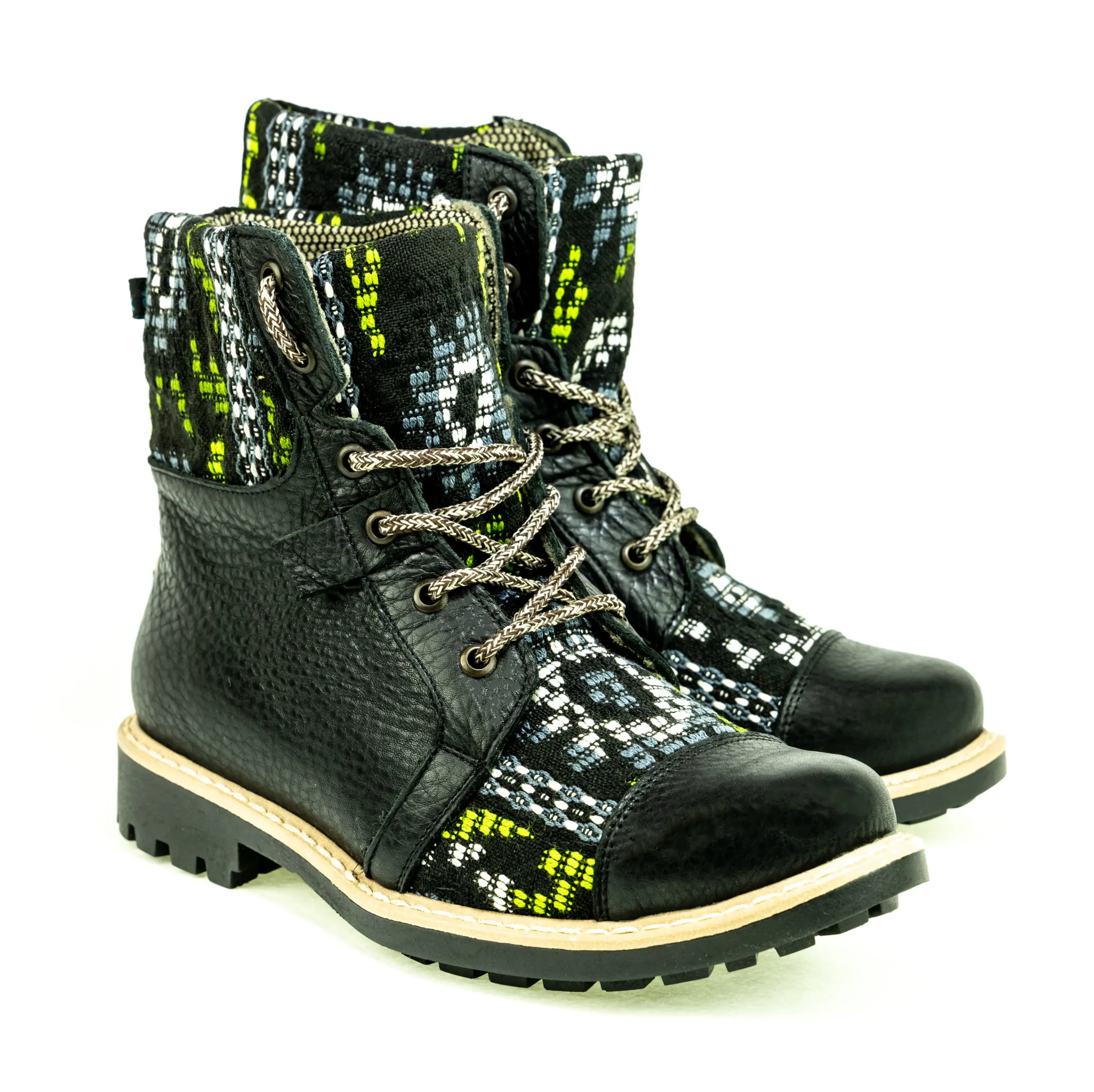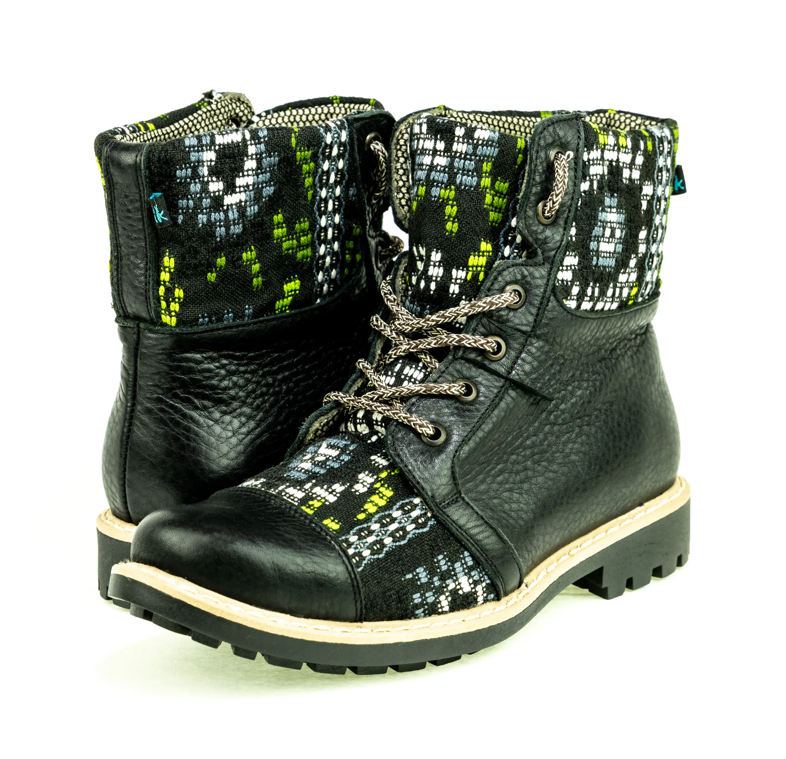 Lleva el viento en tus pasos con un calzado que honra a los creadores del cero. Esta bota minera no es solo un artículo, es un lienzo que cuenta una historia milenaria. Hemos combinado la resistencia y el carácter de la bota minera tradicional con la vibrante complejidad del arte textil maya.