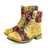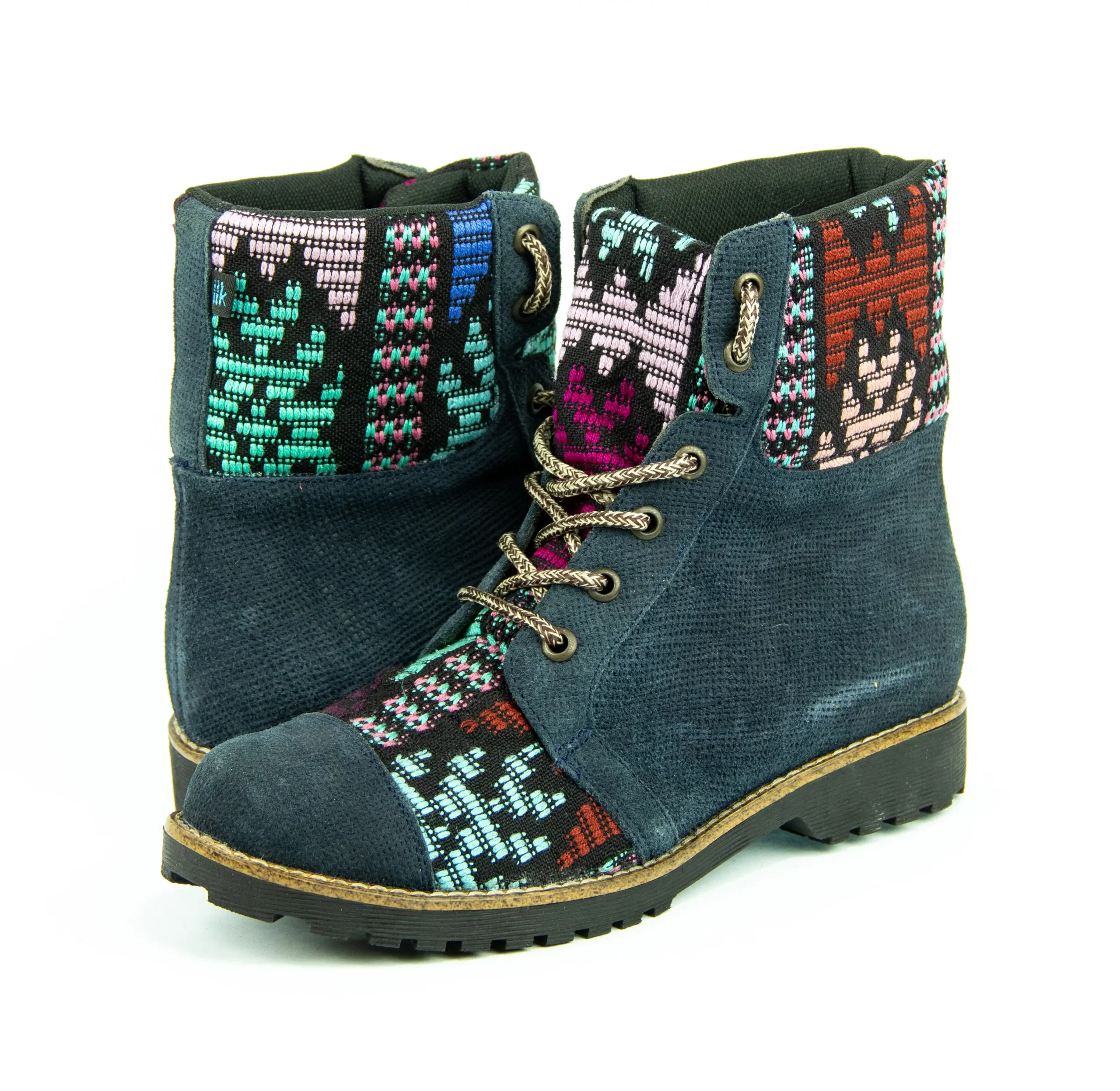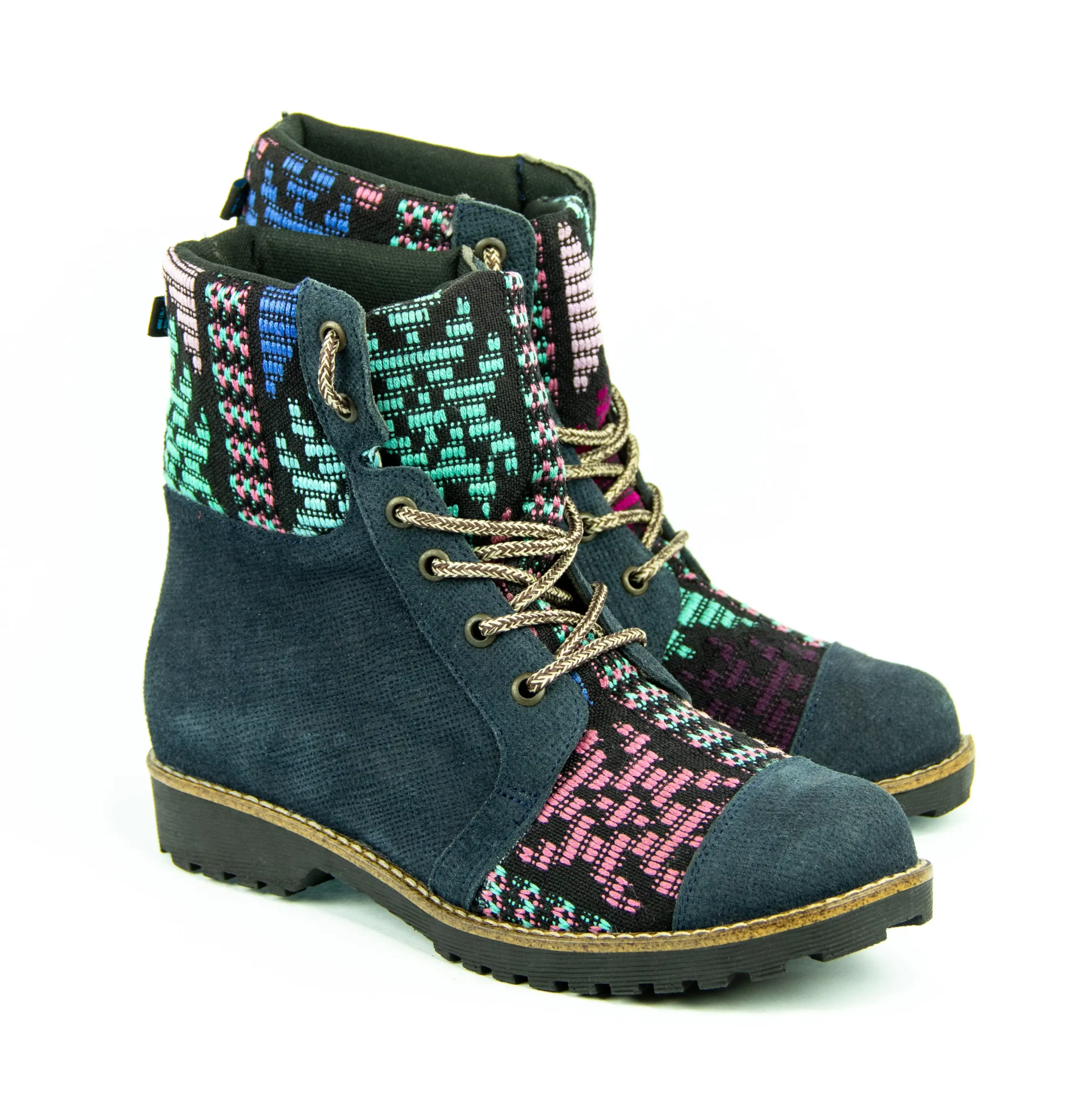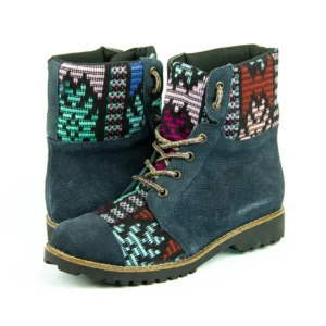 Pieza única e irrepetible. Bota minera de piel fusionada con auténtico textil maya tejido a mano en telar de cintura. Un diseño contemporáneo pensado para quienes valoran la moda consciente y buscan un estilo inigualable. Al ser una obra artesanal, no existe otro par igual en el mundo. Si es tu talla, es tu destino.