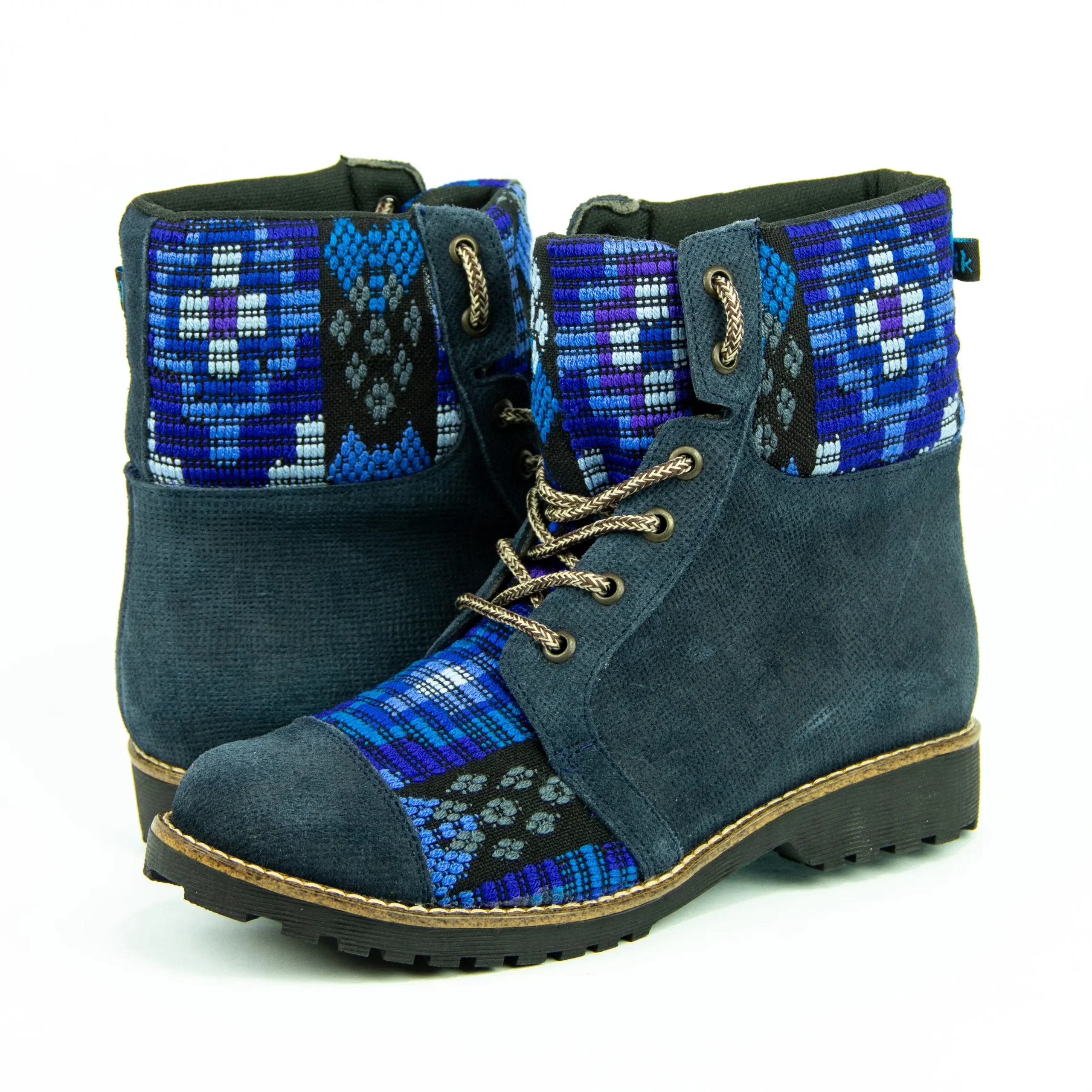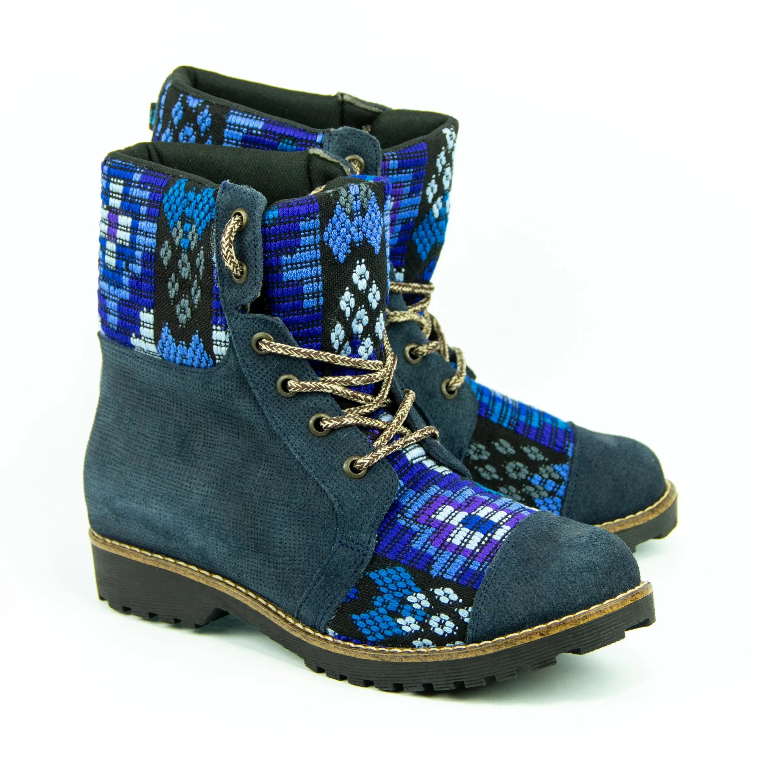 Pieza única e irrepetible. Bota minera de piel fusionada con auténtico textil maya tejido a mano en telar de cintura. Un diseño contemporáneo pensado para quienes valoran la moda consciente y buscan un estilo inigualable. Al ser una obra artesanal, no existe otro par igual en el mundo. Si es tu talla, es tu destino.