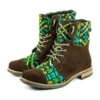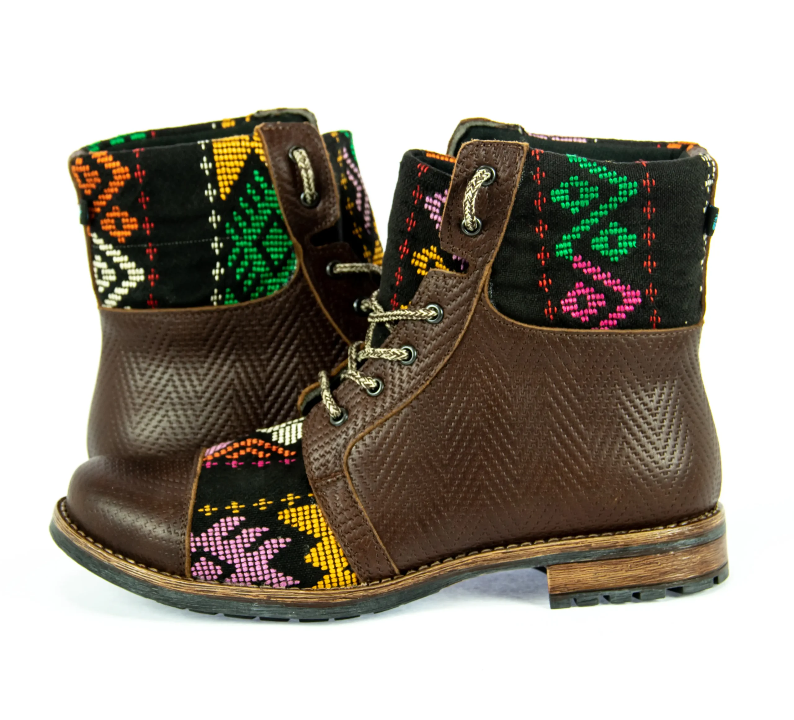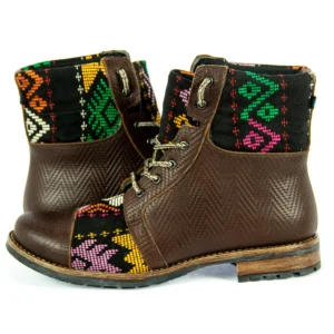 Pieza única e irrepetible. Bota minera de piel fusionada con auténtico textil maya tejido a mano en telar de cintura. Un diseño contemporáneo pensado para quienes valoran la moda consciente y buscan un estilo inigualable. Al ser una obra artesanal, no existe otro par igual en el mundo. Si es tu talla, es tu destino.