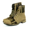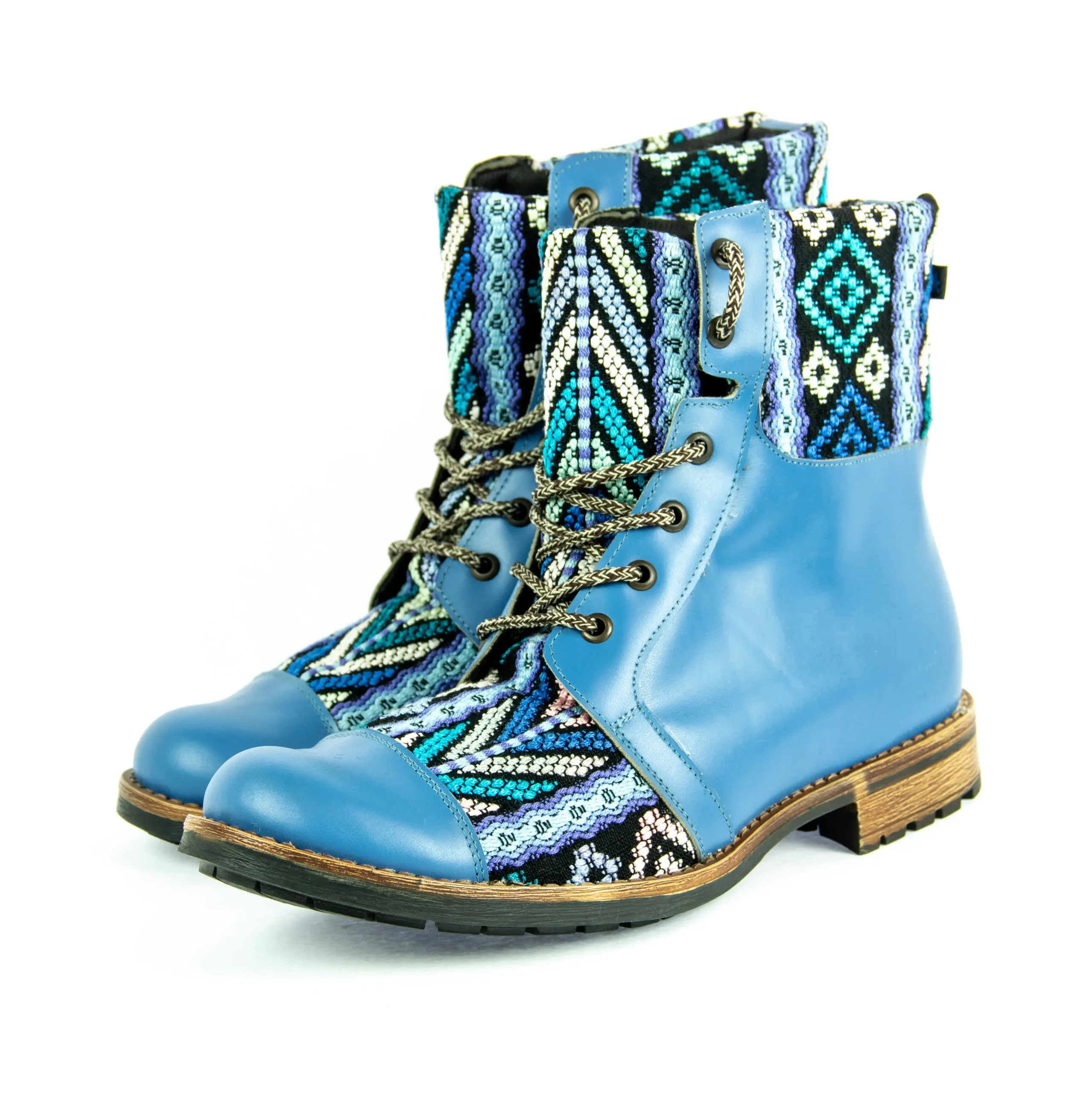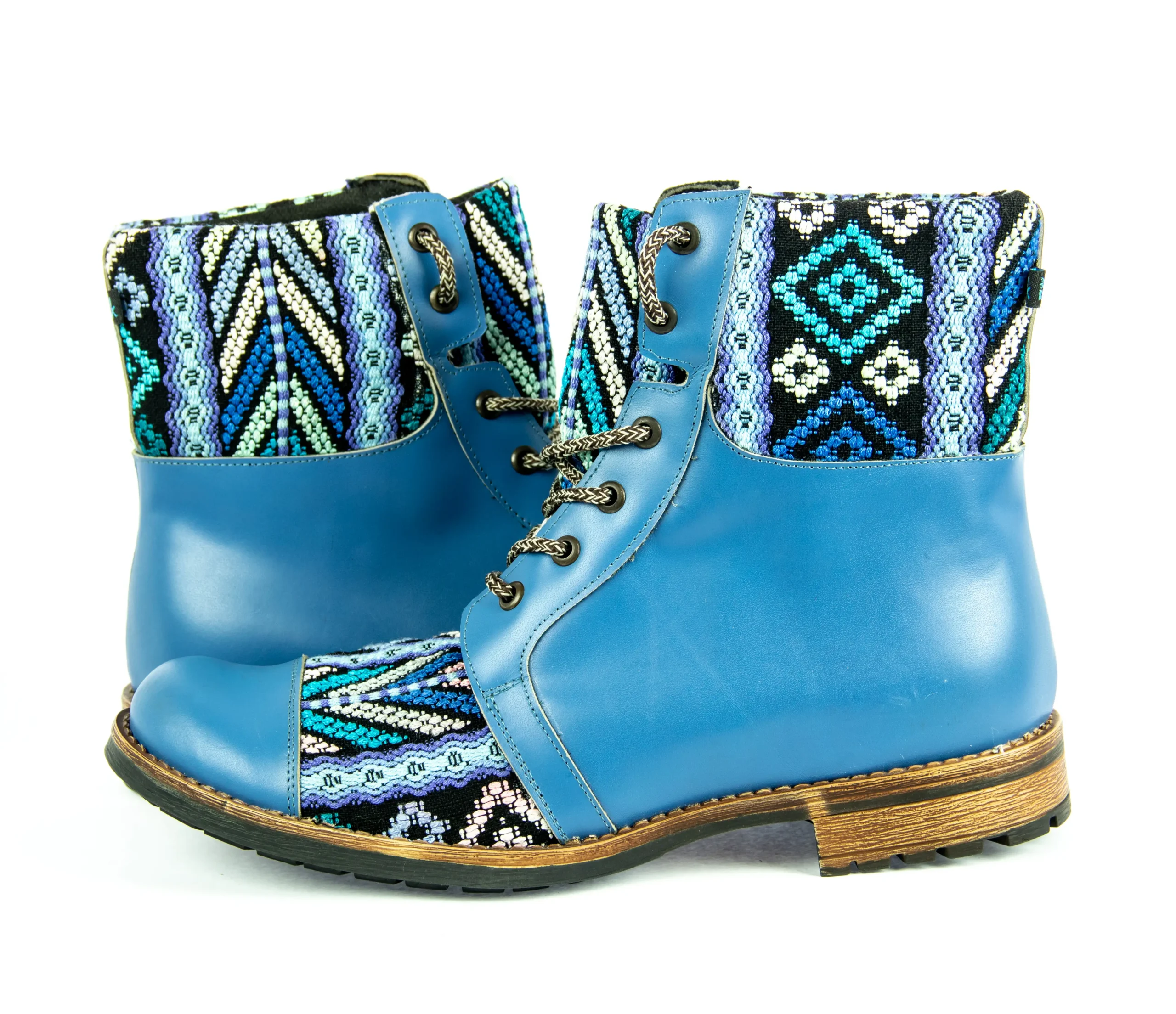 Pieza única e irrepetible. Bota minera de piel fusionada con auténtico textil maya tejido a mano en telar de cintura. Un diseño contemporáneo pensado para quienes valoran la moda consciente y buscan un estilo inigualable. Al ser una obra artesanal, no existe otro par igual en el mundo. Si es tu talla, es tu destino.