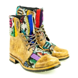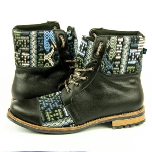 Pieza única e irrepetible. Bota minera de piel fusionada con auténtico textil maya tejido a mano en telar de cintura. Un diseño contemporáneo pensado para quienes valoran la moda consciente y buscan un estilo inigualable. Al ser una obra artesanal, no existe otro par igual en el mundo. Si es tu talla, es tu destino.