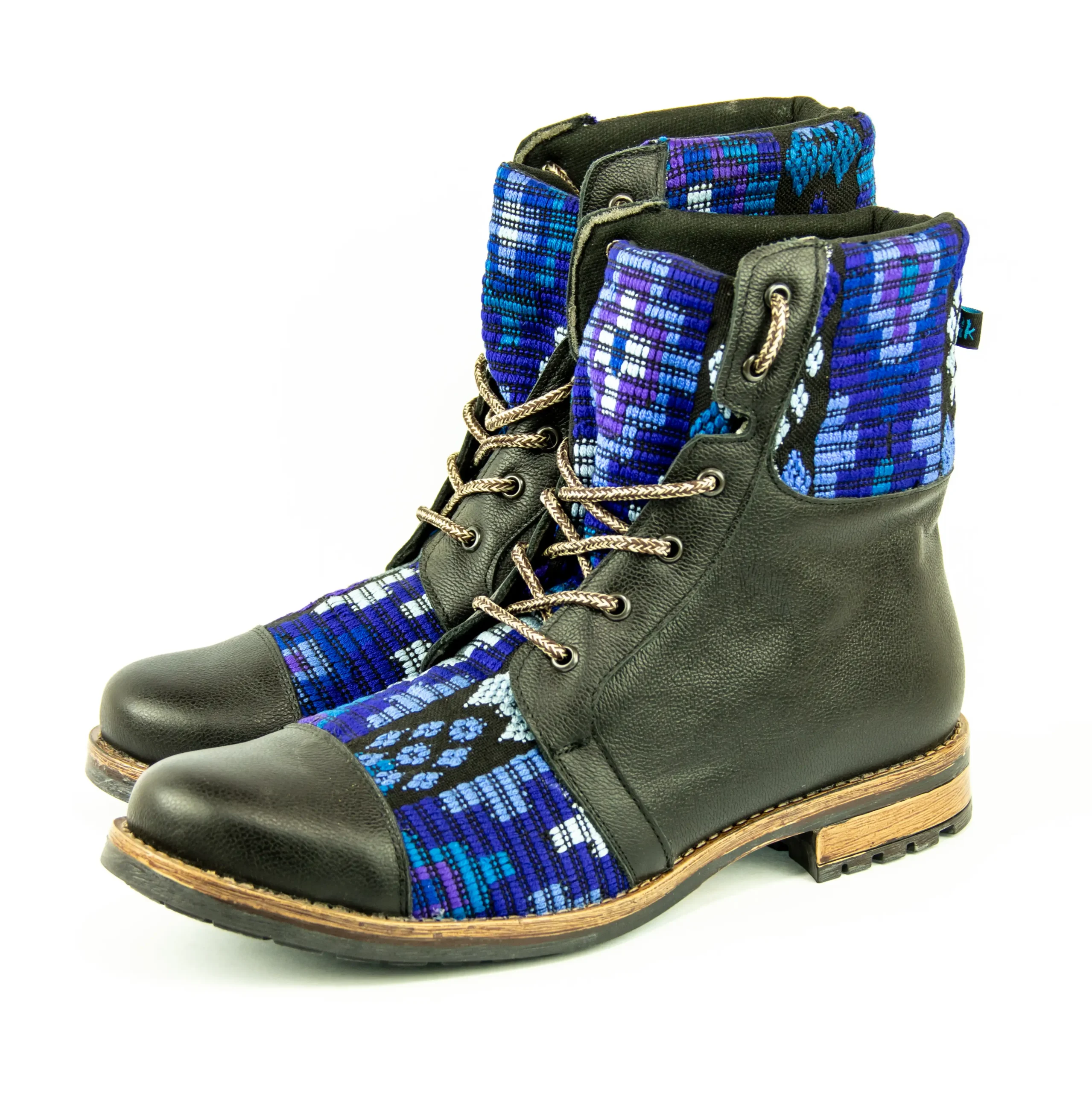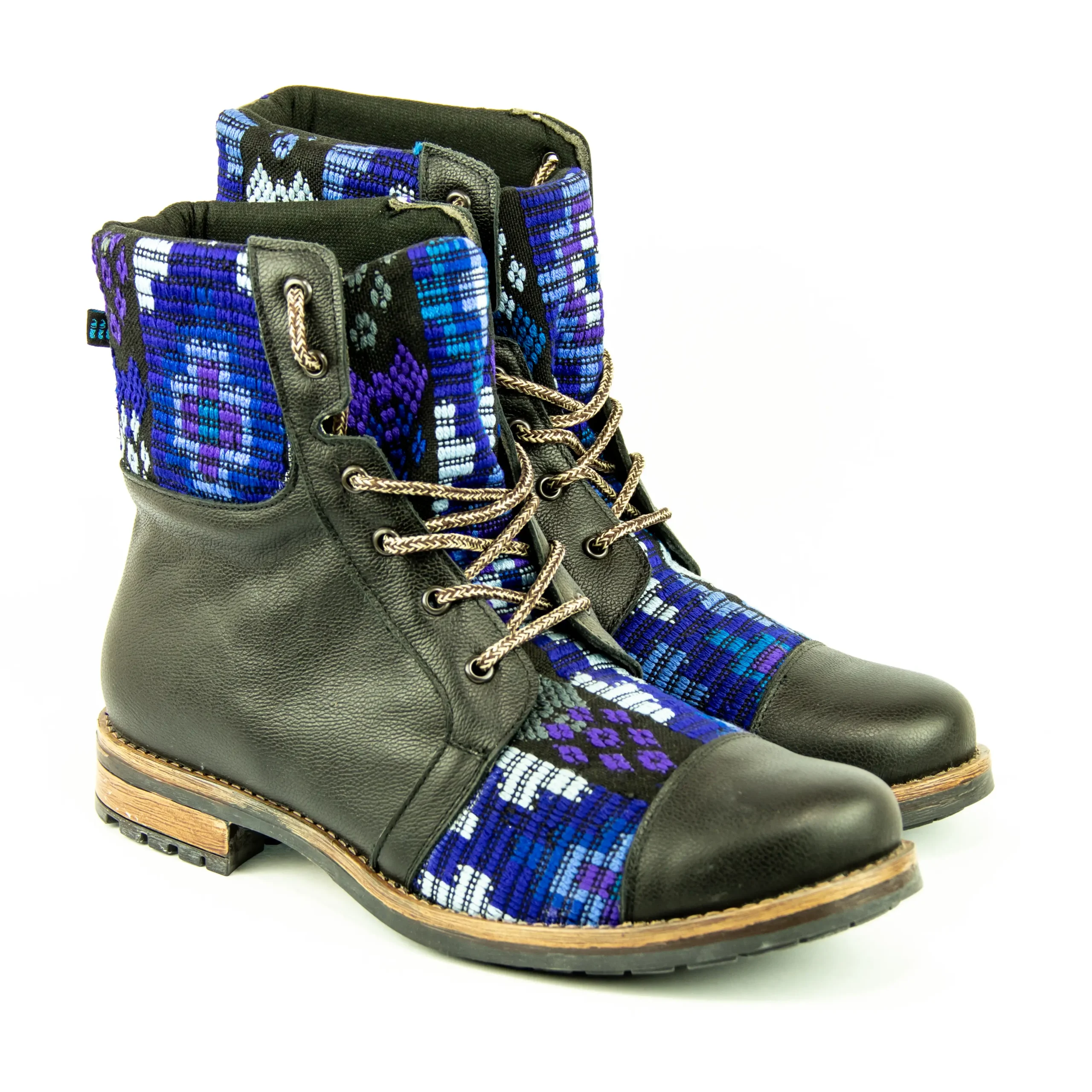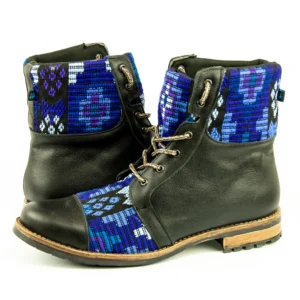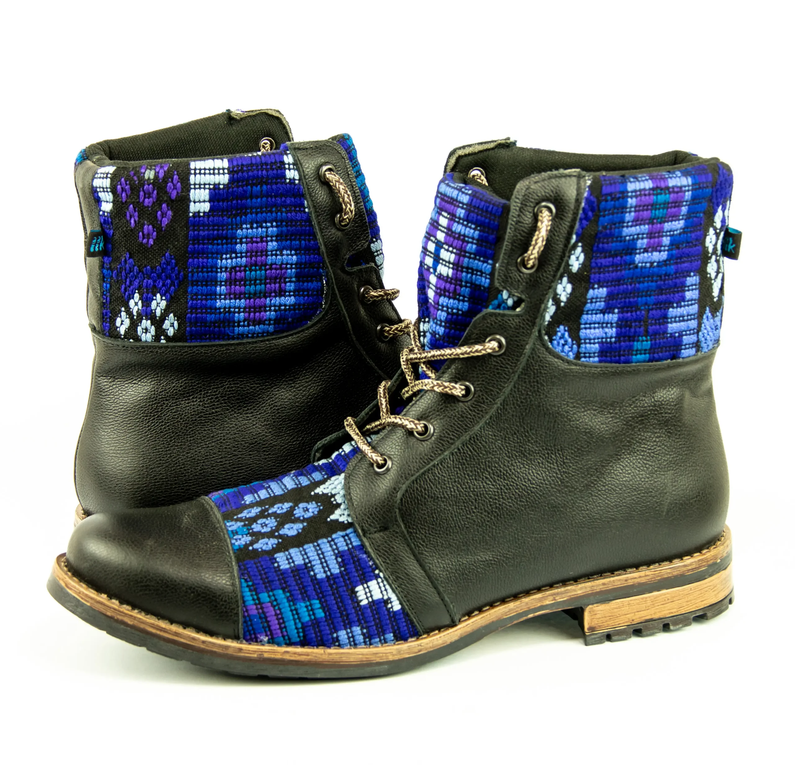 Pieza única e irrepetible. Bota minera de piel fusionada con auténtico textil maya tejido a mano en telar de cintura. Un diseño contemporáneo pensado para quienes valoran la moda consciente y buscan un estilo inigualable. Al ser una obra artesanal, no existe otro par igual en el mundo. Si es tu talla, es tu destino.