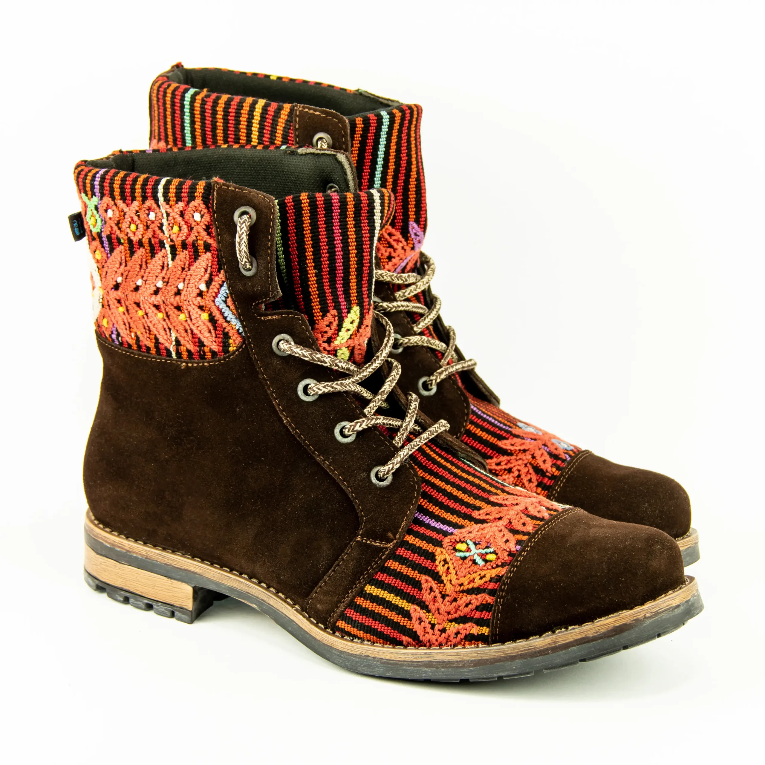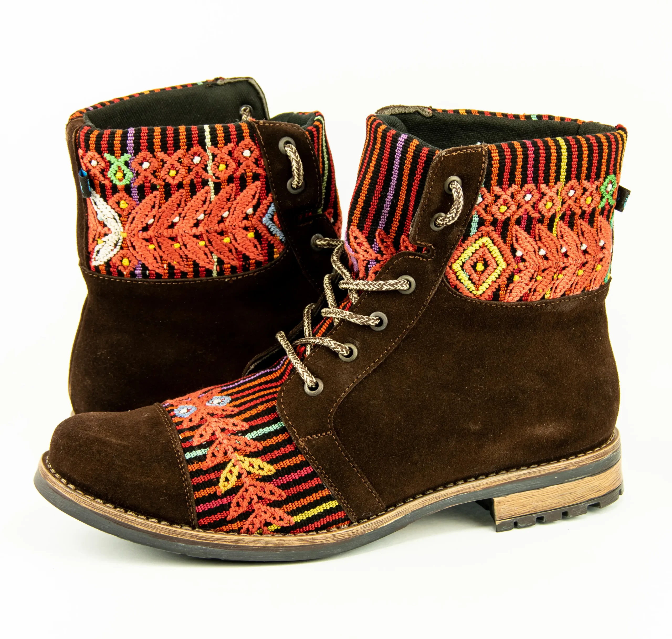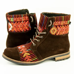 Pieza única e irrepetible. Bota minera de piel fusionada con auténtico textil maya tejido a mano en telar de cintura. Un diseño contemporáneo pensado para quienes valoran la moda consciente y buscan un estilo inigualable. Al ser una obra artesanal, no existe otro par igual en el mundo. Si es tu talla, es tu destino.