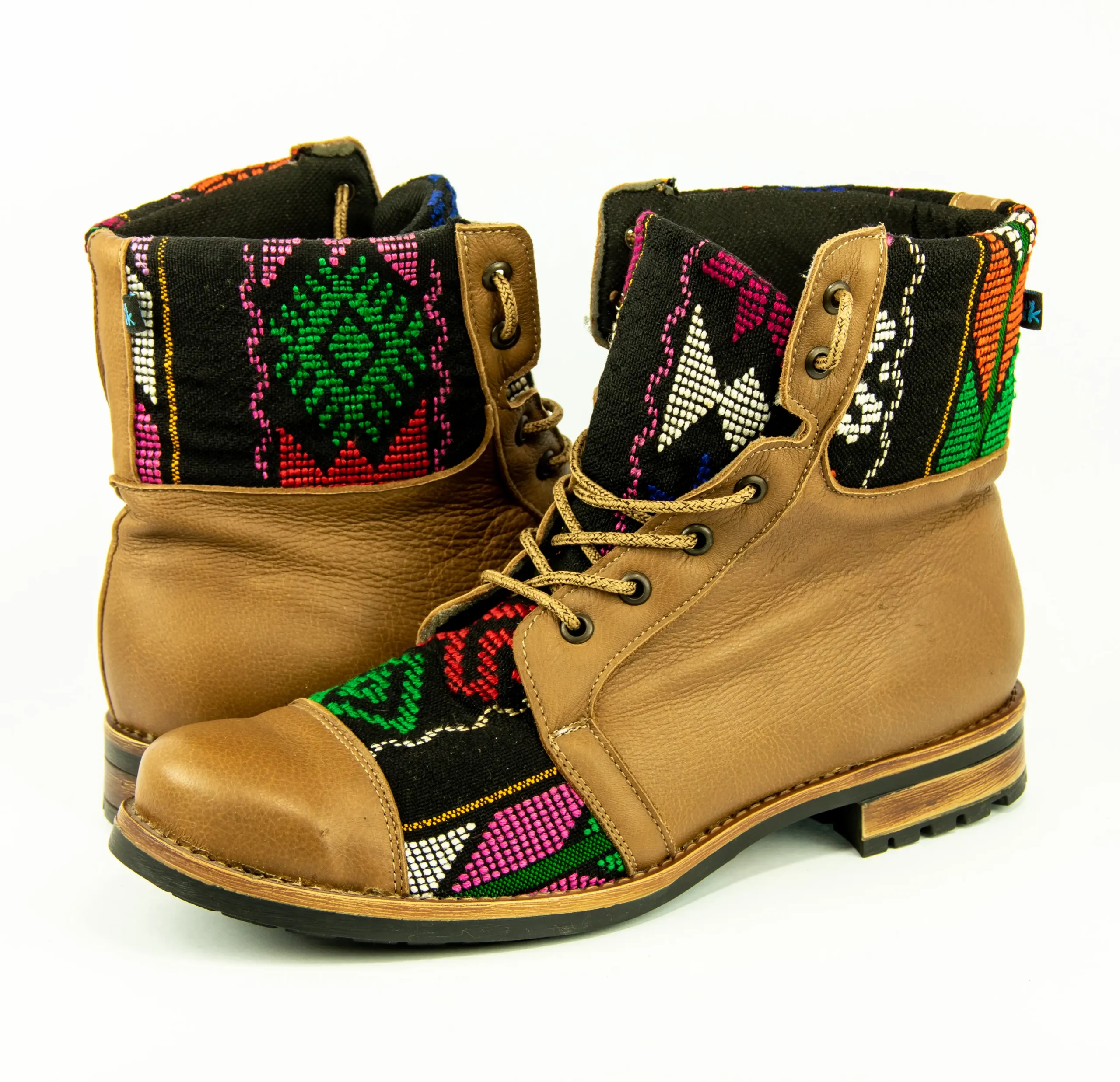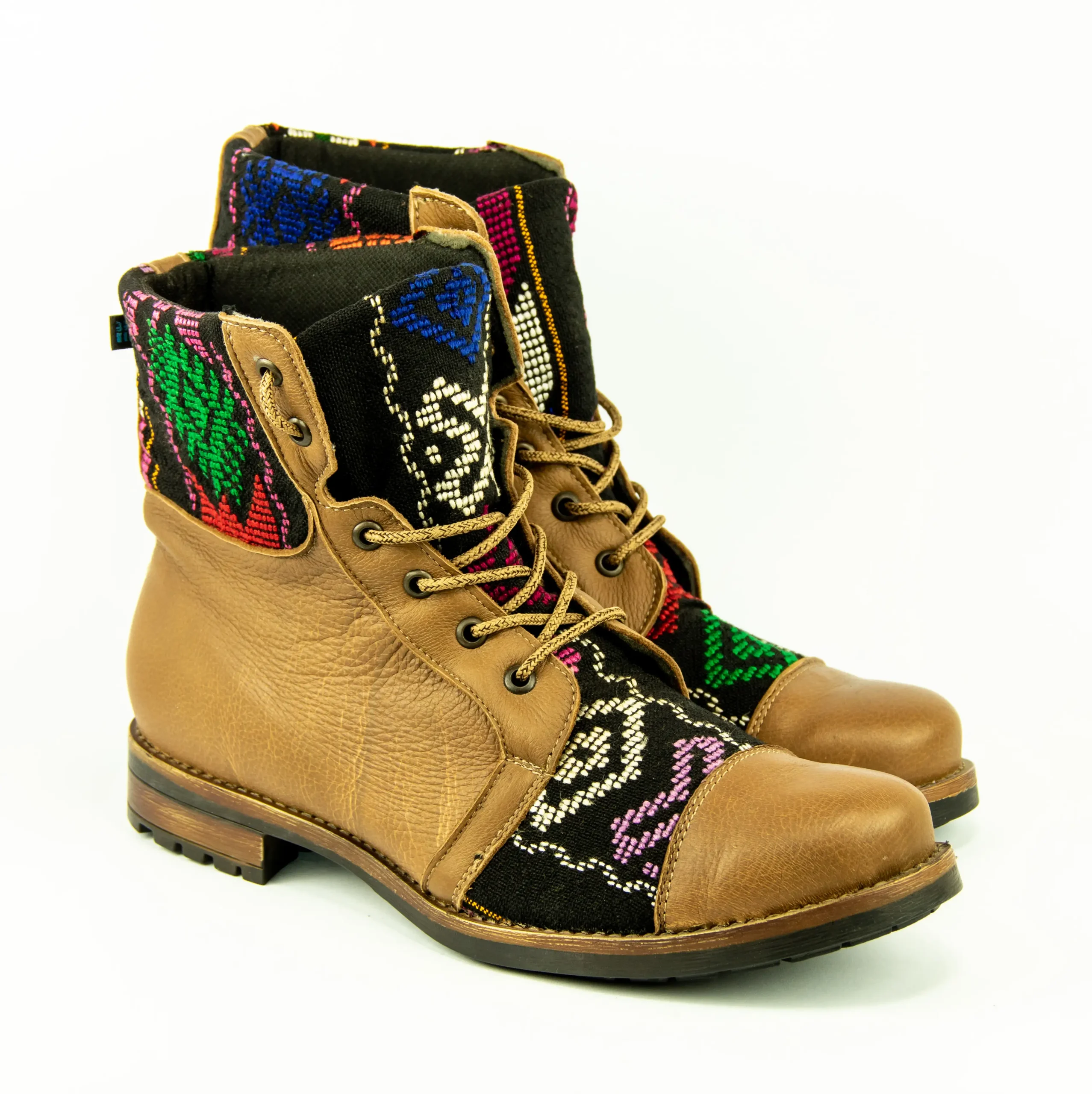 Lleva el viento en tus pasos con un calzado que honra a los creadores del cero. Esta bota minera no es solo un artículo, es un lienzo que cuenta una historia milenaria. Hemos combinado la resistencia y el carácter de la bota minera tradicional con la vibrante complejidad del arte textil maya.