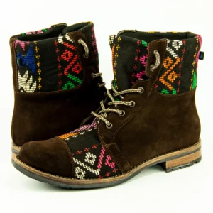 Pieza única e irrepetible. Bota minera de piel fusionada con auténtico textil maya tejido a mano en telar de cintura. Un diseño contemporáneo pensado para quienes valoran la moda consciente y buscan un estilo inigualable. Al ser una obra artesanal, no existe otro par igual en el mundo. Si es tu talla, es tu destino.