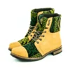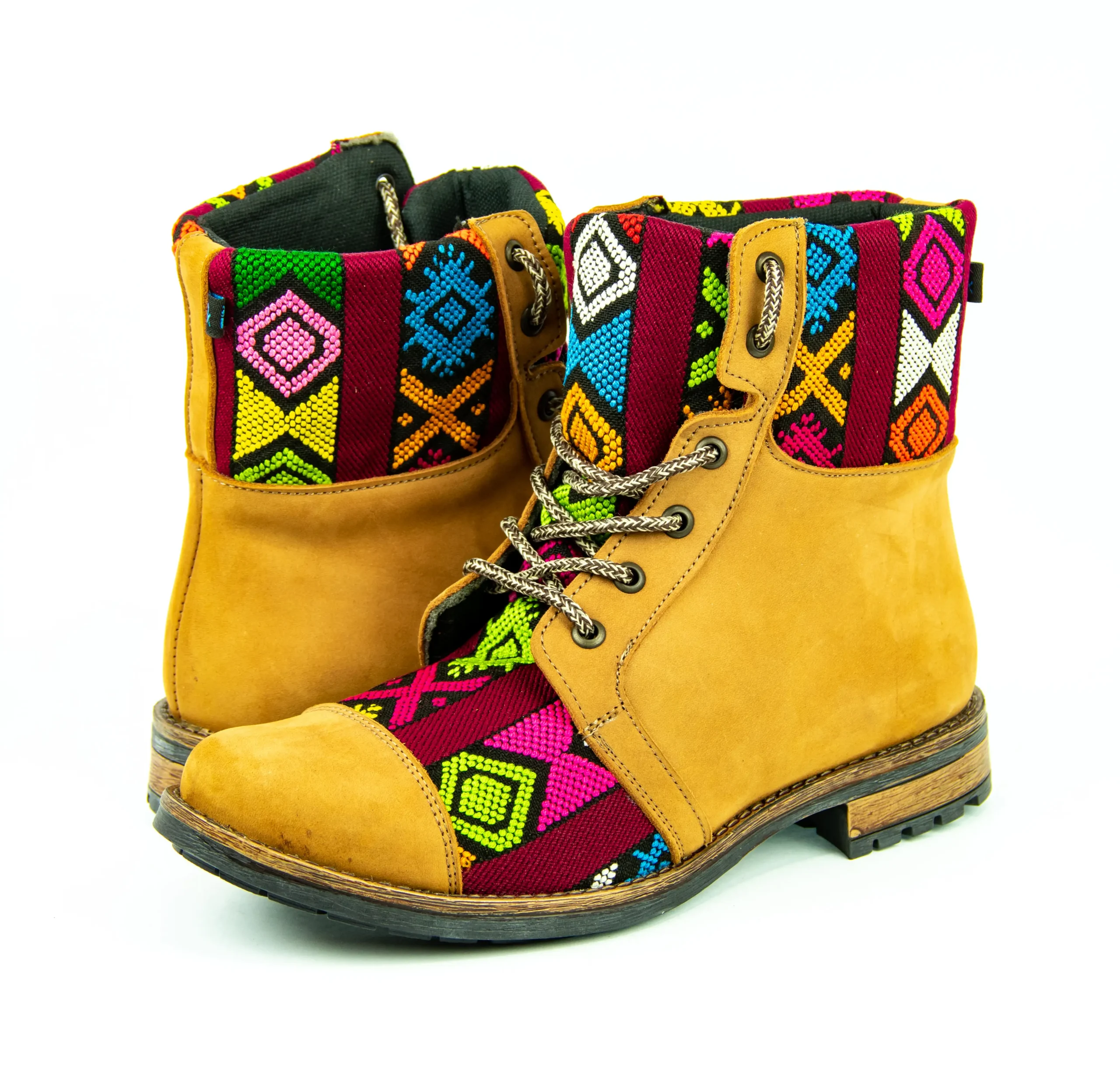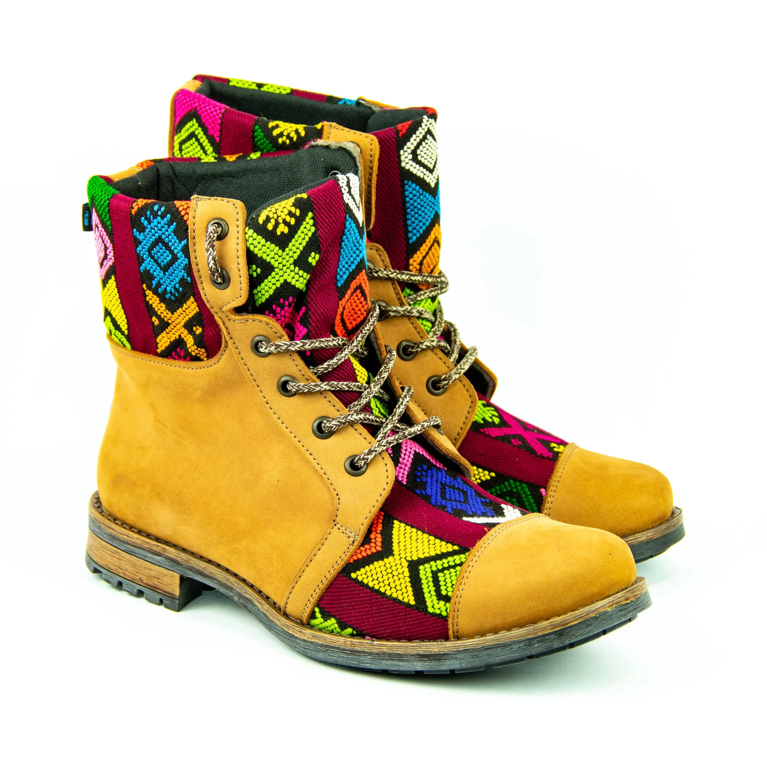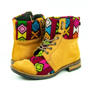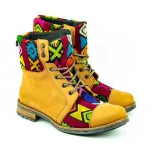 Pieza única e irrepetible. Bota minera de piel fusionada con auténtico textil maya tejido a mano en telar de cintura. Un diseño contemporáneo pensado para quienes valoran la moda consciente y buscan un estilo inigualable. Al ser una obra artesanal, no existe otro par igual en el mundo. Si es tu talla, es tu destino.
