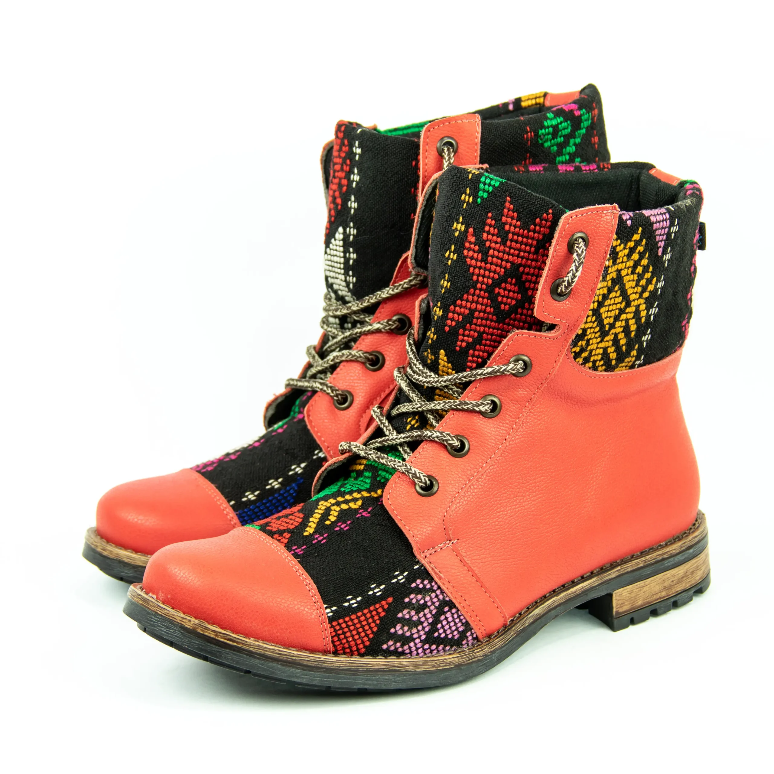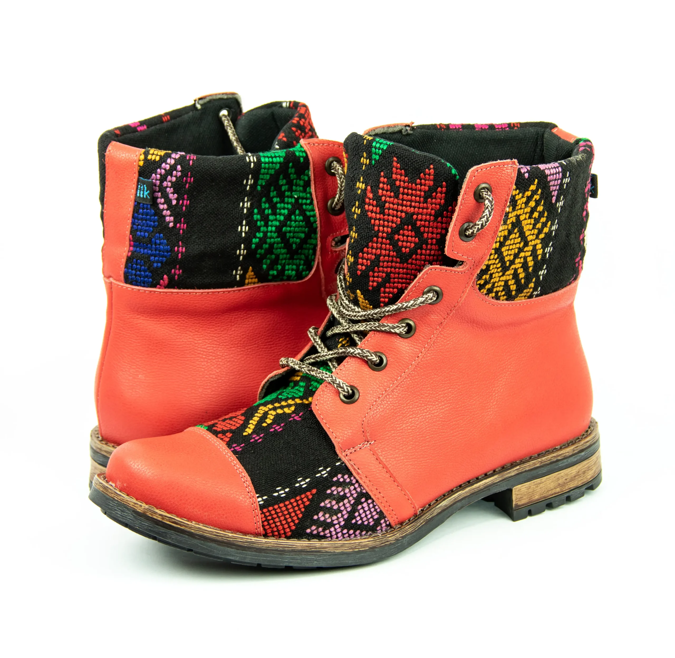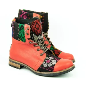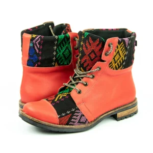 Pieza única e irrepetible. Bota minera de piel fusionada con auténtico textil maya tejido a mano en telar de cintura. Un diseño contemporáneo pensado para quienes valoran la moda consciente y buscan un estilo inigualable. Al ser una obra artesanal, no existe otro par igual en el mundo. Si es tu talla, es tu destino.
