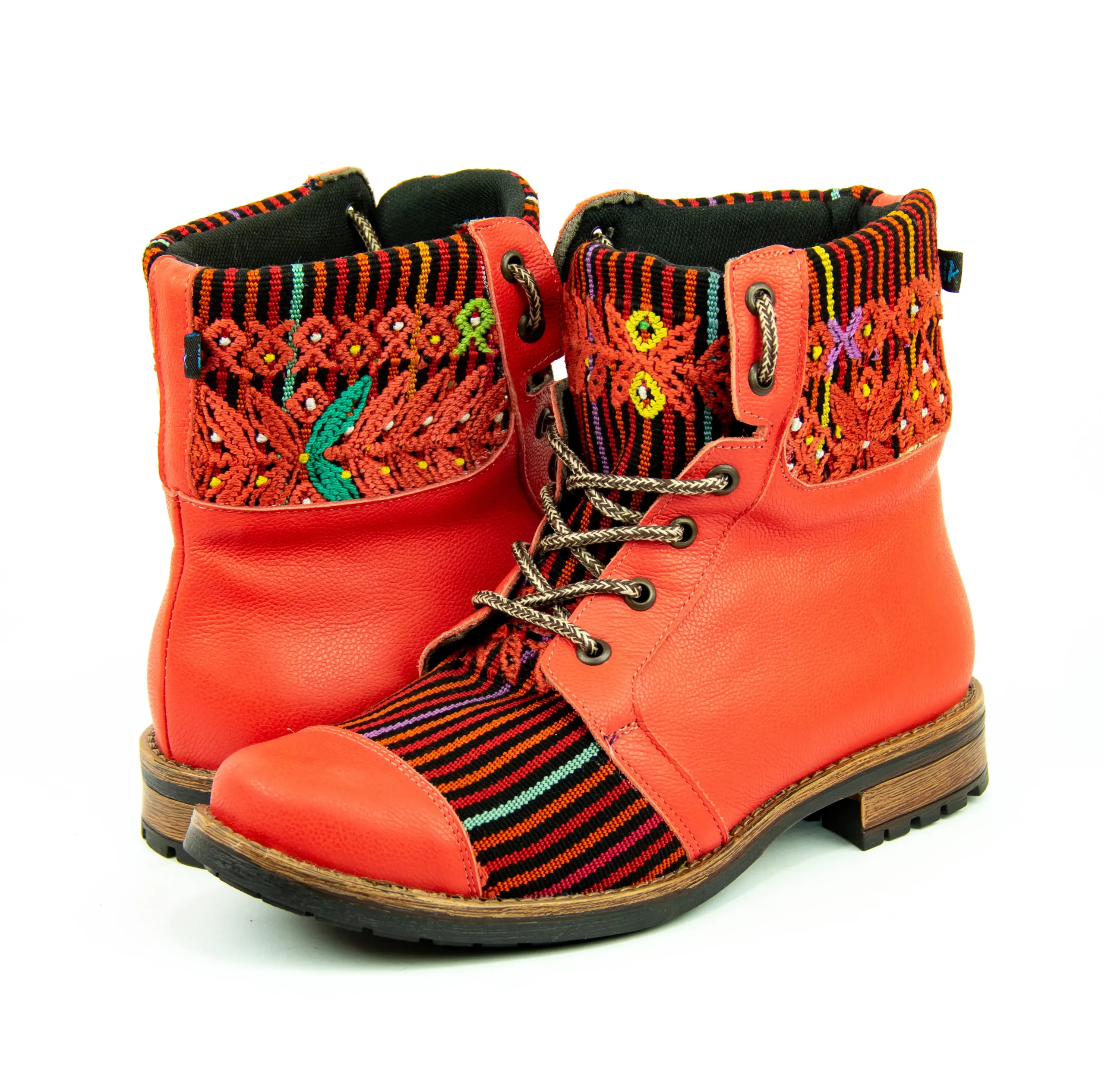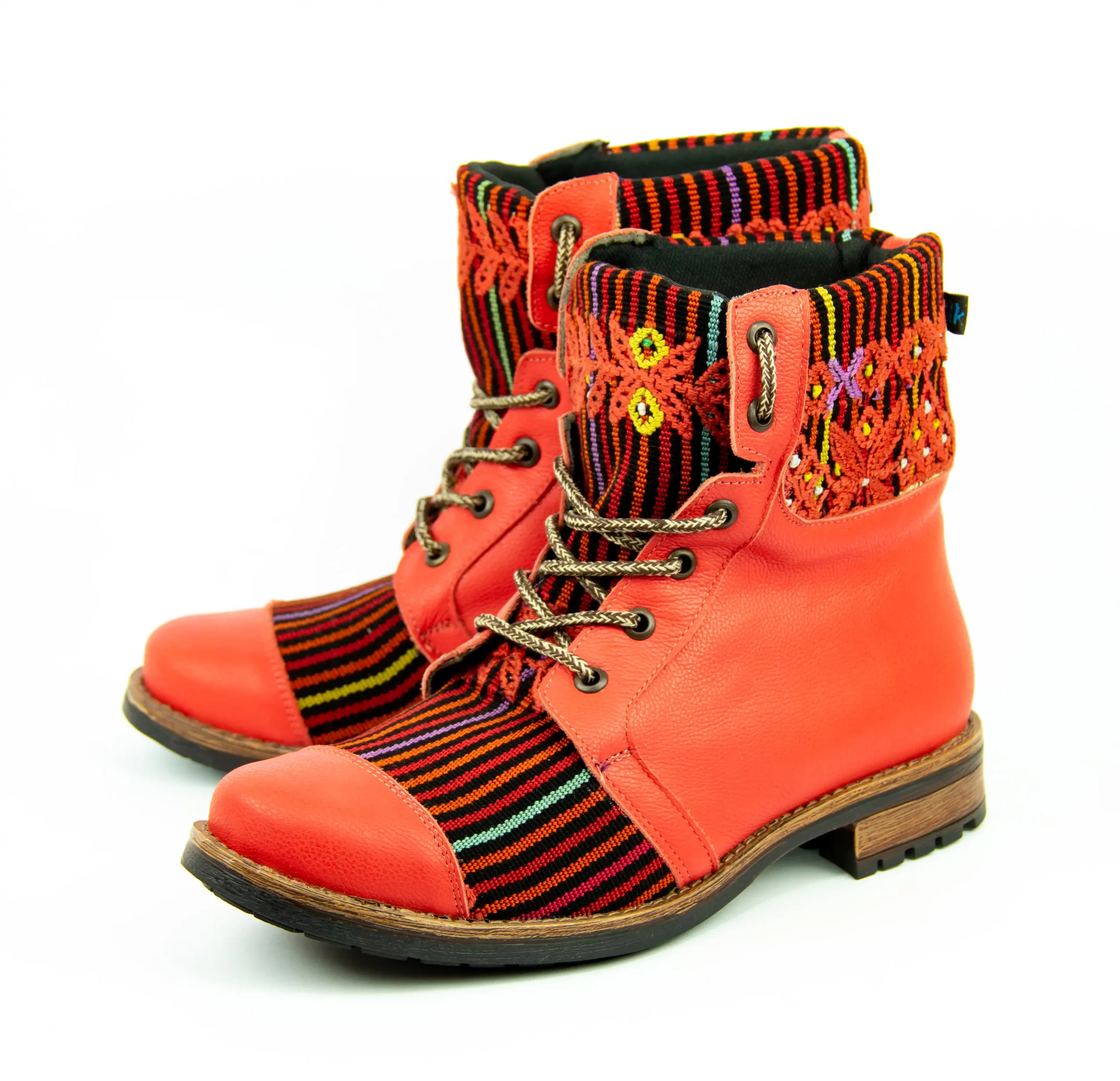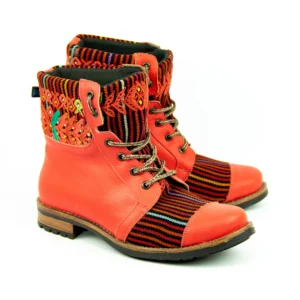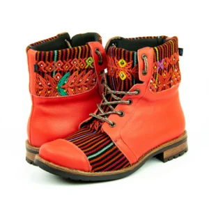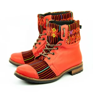 Pieza única e irrepetible. Bota minera de piel fusionada con auténtico textil maya tejido a mano en telar de cintura. Un diseño contemporáneo pensado para quienes valoran la moda consciente y buscan un estilo inigualable. Al ser una obra artesanal, no existe otro par igual en el mundo. Si es tu talla, es tu destino.