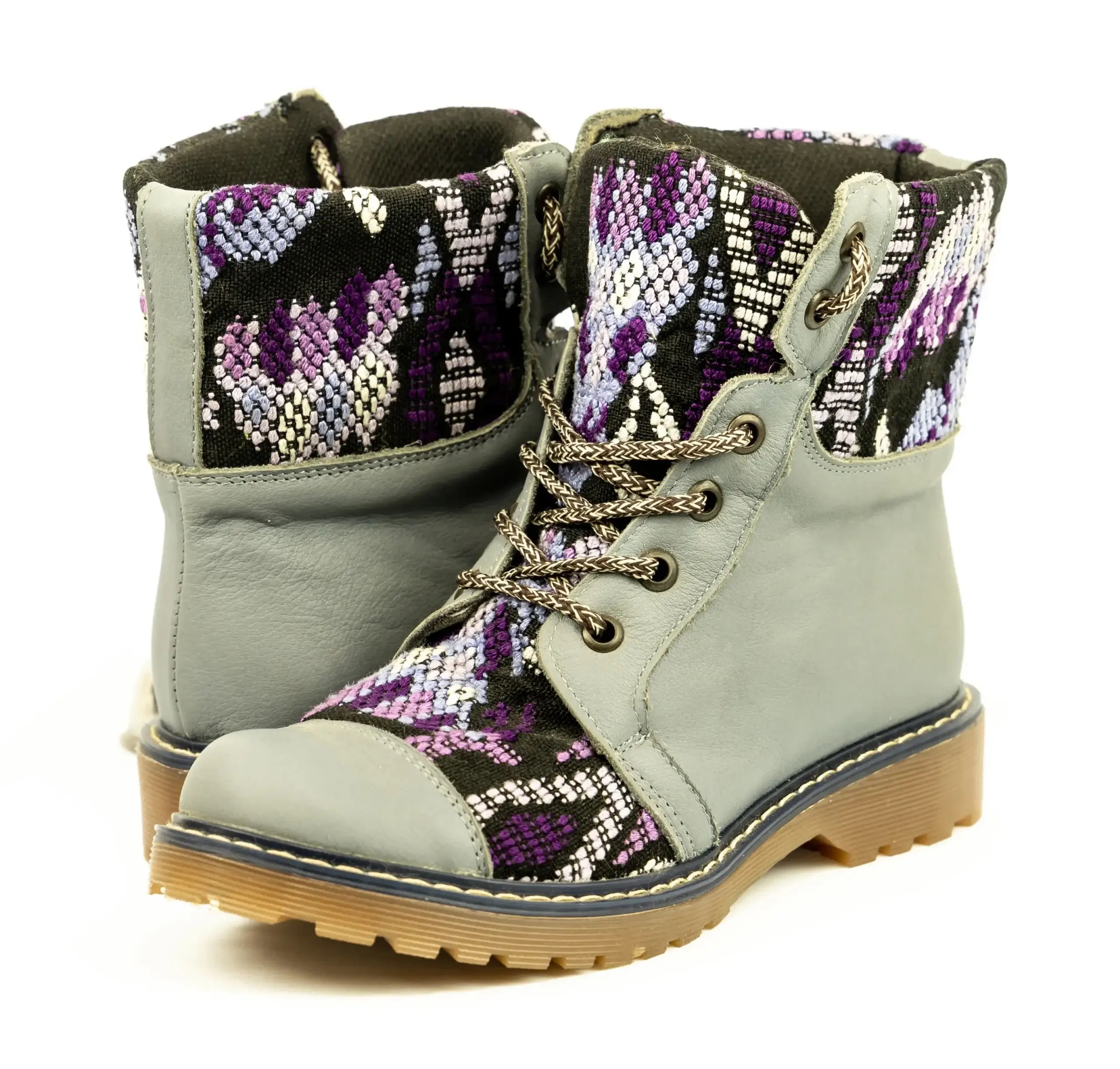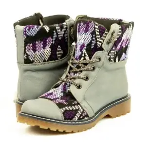 Pieza única e irrepetible. Bota minera de piel fusionada con auténtico textil maya tejido a mano en telar de cintura. Un diseño contemporáneo pensado para quienes valoran la moda consciente y buscan un estilo inigualable. Al ser una obra artesanal, no existe otro par igual en el mundo. Si es tu talla, es tu destino.