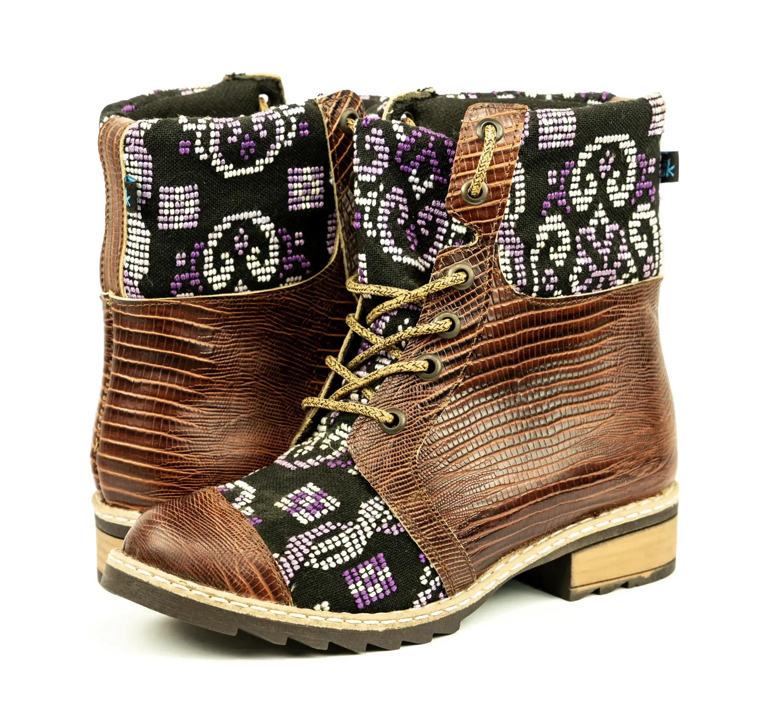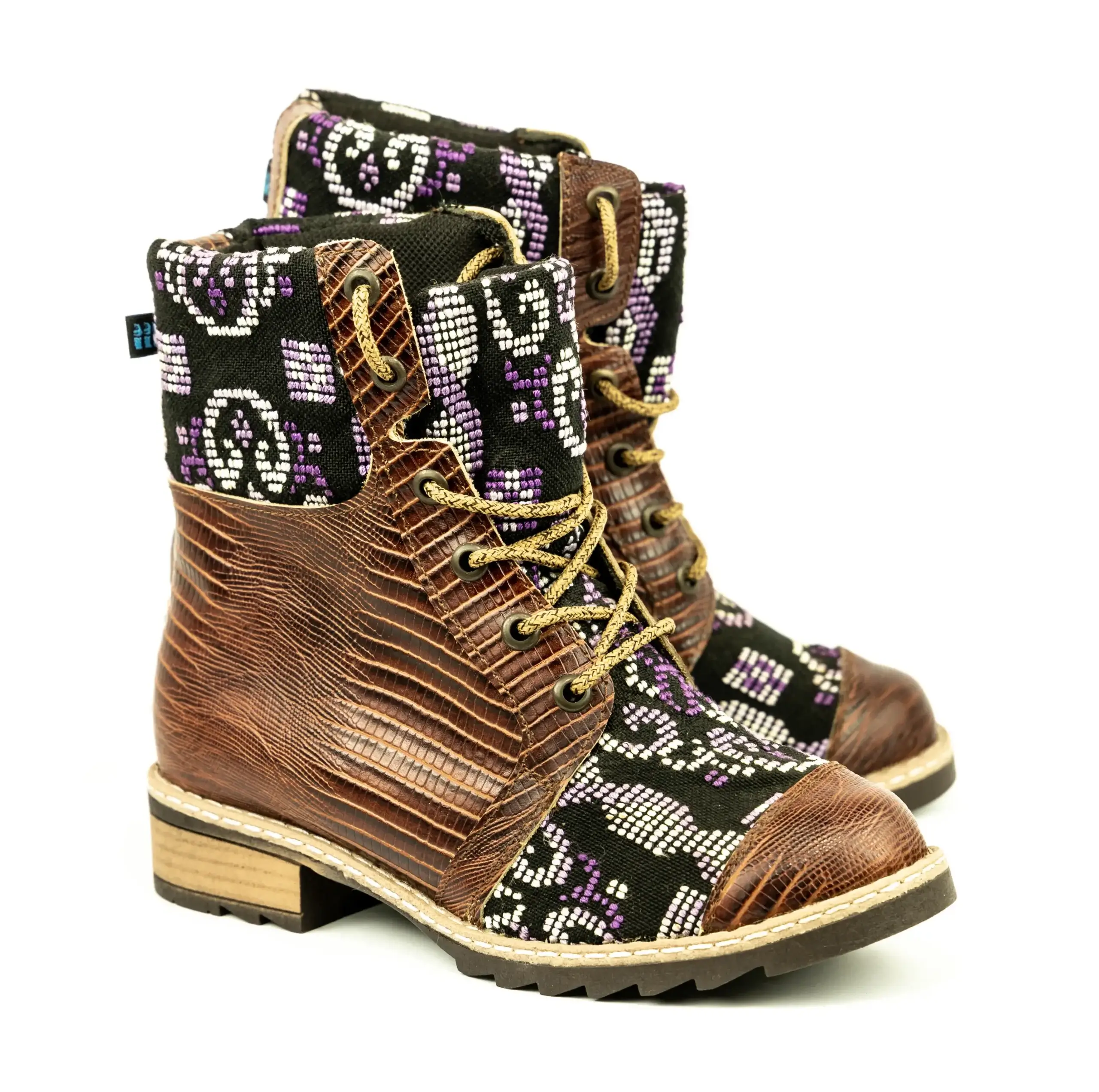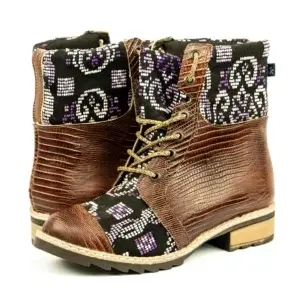 Pieza única e irrepetible. Bota minera de piel fusionada con auténtico textil maya tejido a mano en telar de cintura. Un diseño contemporáneo pensado para quienes valoran la moda consciente y buscan un estilo inigualable. Al ser una obra artesanal, no existe otro par igual en el mundo. Si es tu talla, es tu destino.