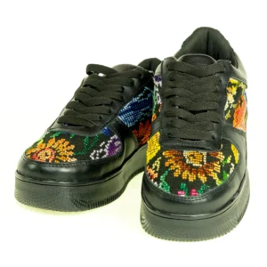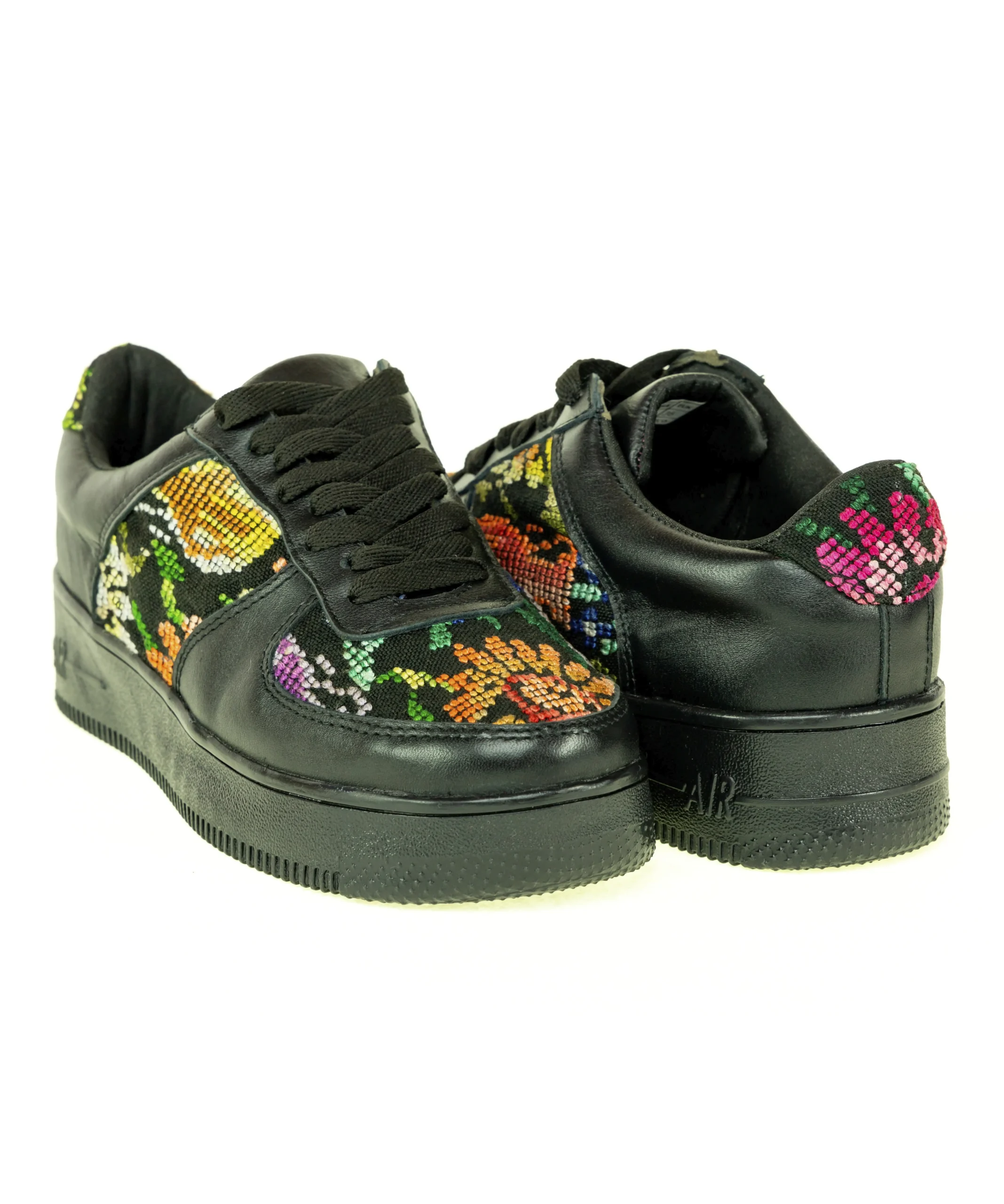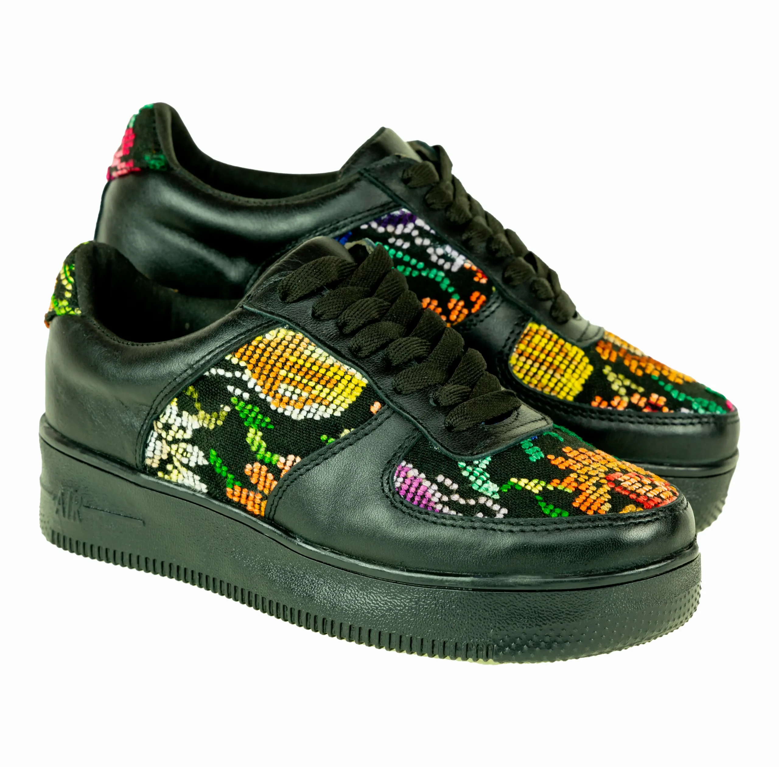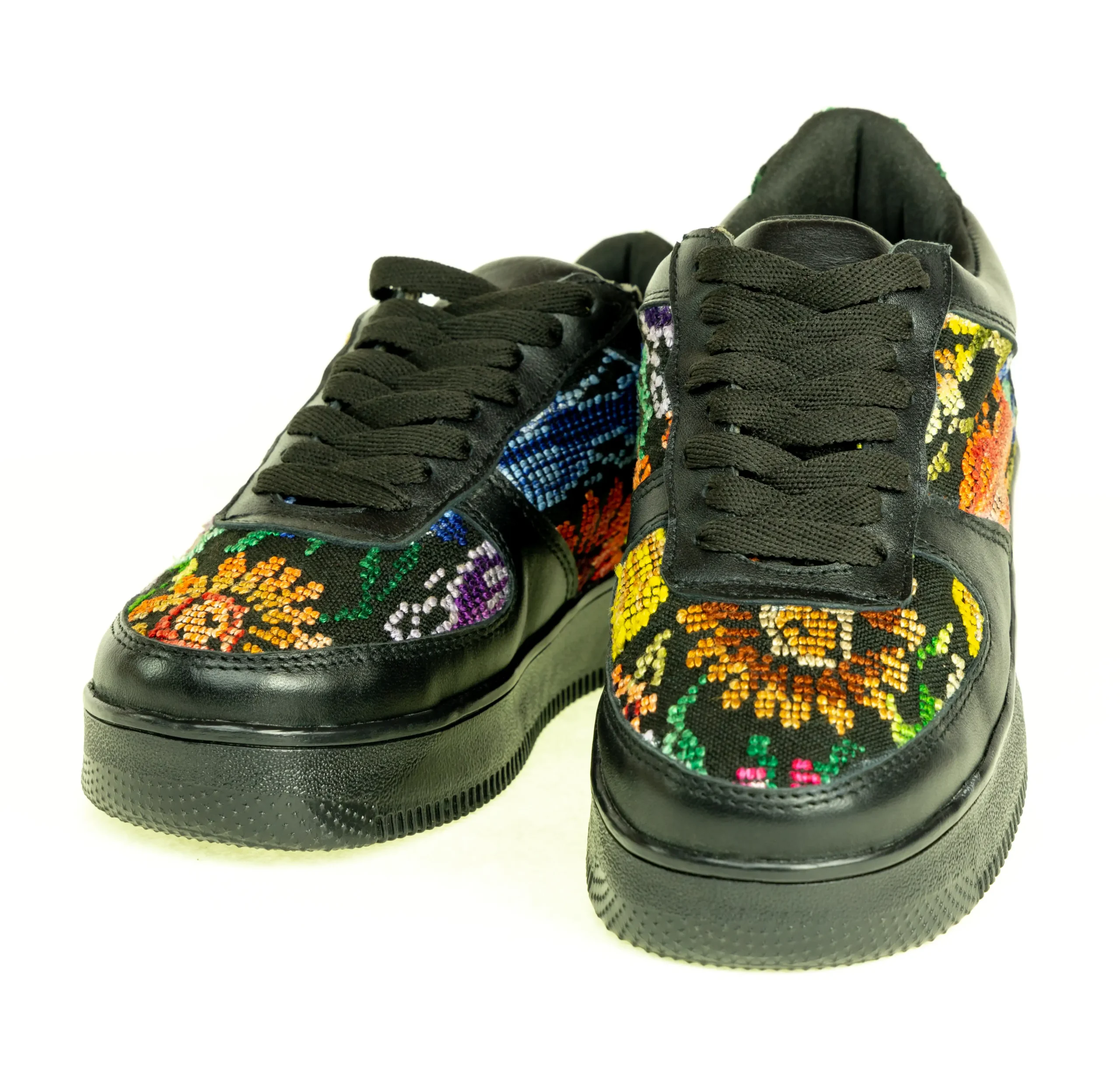 Pieza única e irrepetible. Tenis de piel fusionados con auténtico textil maya tejido a mano en telar de cintura. Un diseño urbano y contemporáneo pensado para quienes valoran la moda consciente y buscan comodidad con un estilo inigualable. Al ser una obra artesanal, no existe otro par igual en el mundo. Si es tu talla, es tu destino.