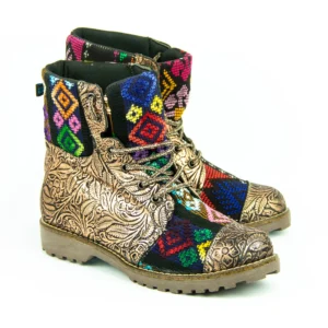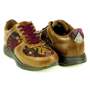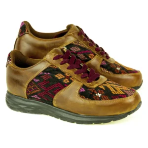 Pieza única e irrepetible. Tenis de piel fusionados con auténtico textil maya tejido a mano en telar de cintura. Un diseño urbano y contemporáneo pensado para quienes valoran la moda consciente y buscan comodidad con un estilo inigualable. Al ser una obra artesanal, no existe otro par igual en el mundo. Si es tu talla, es tu destino.