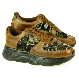 Pieza única e irrepetible. Tenis de piel fusionados con auténtico textil maya tejido a mano en telar de cintura. Un diseño urbano y contemporáneo pensado para quienes valoran la moda consciente y buscan comodidad con un estilo inigualable. Al ser una obra artesanal, no existe otro par igual en el mundo. Si es tu talla, es tu destino.