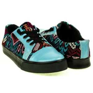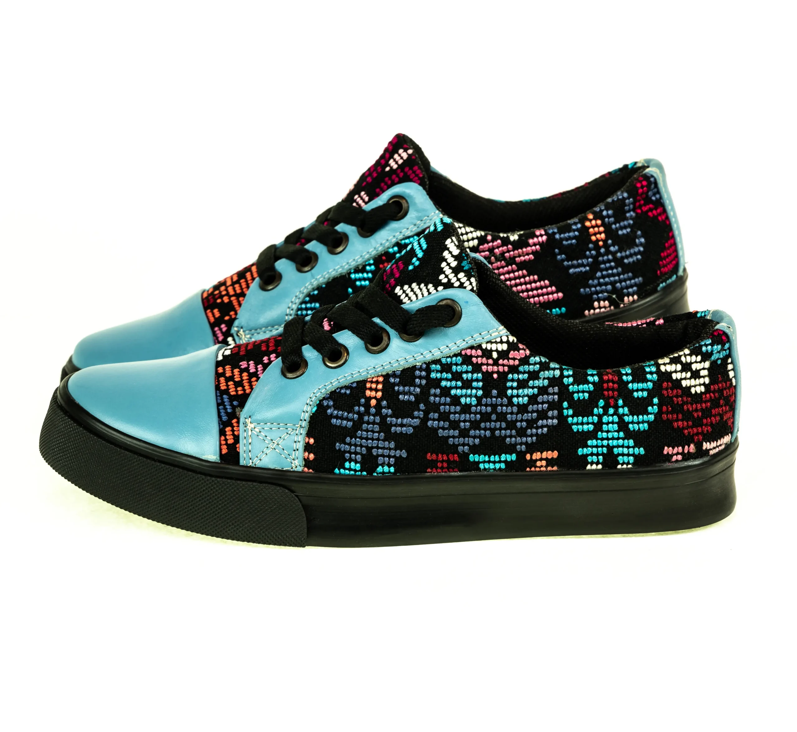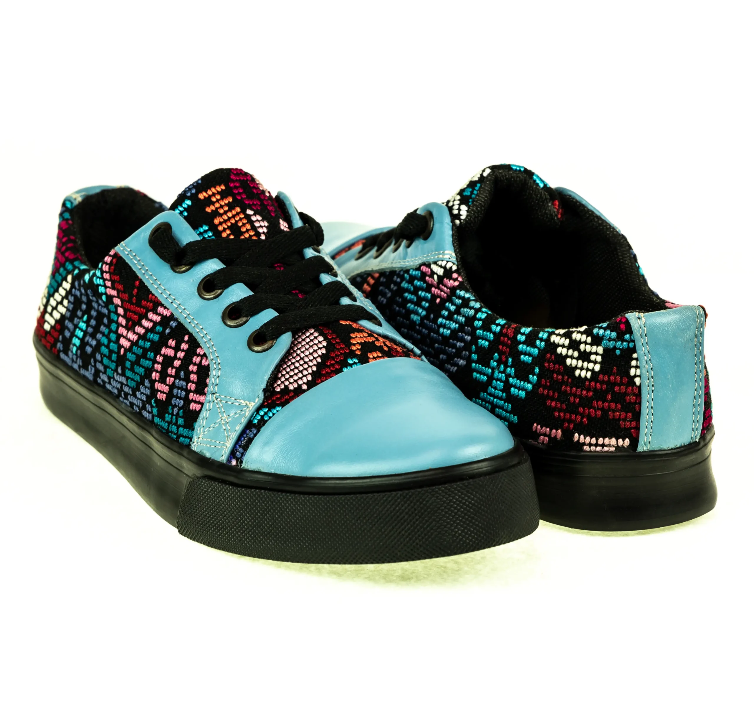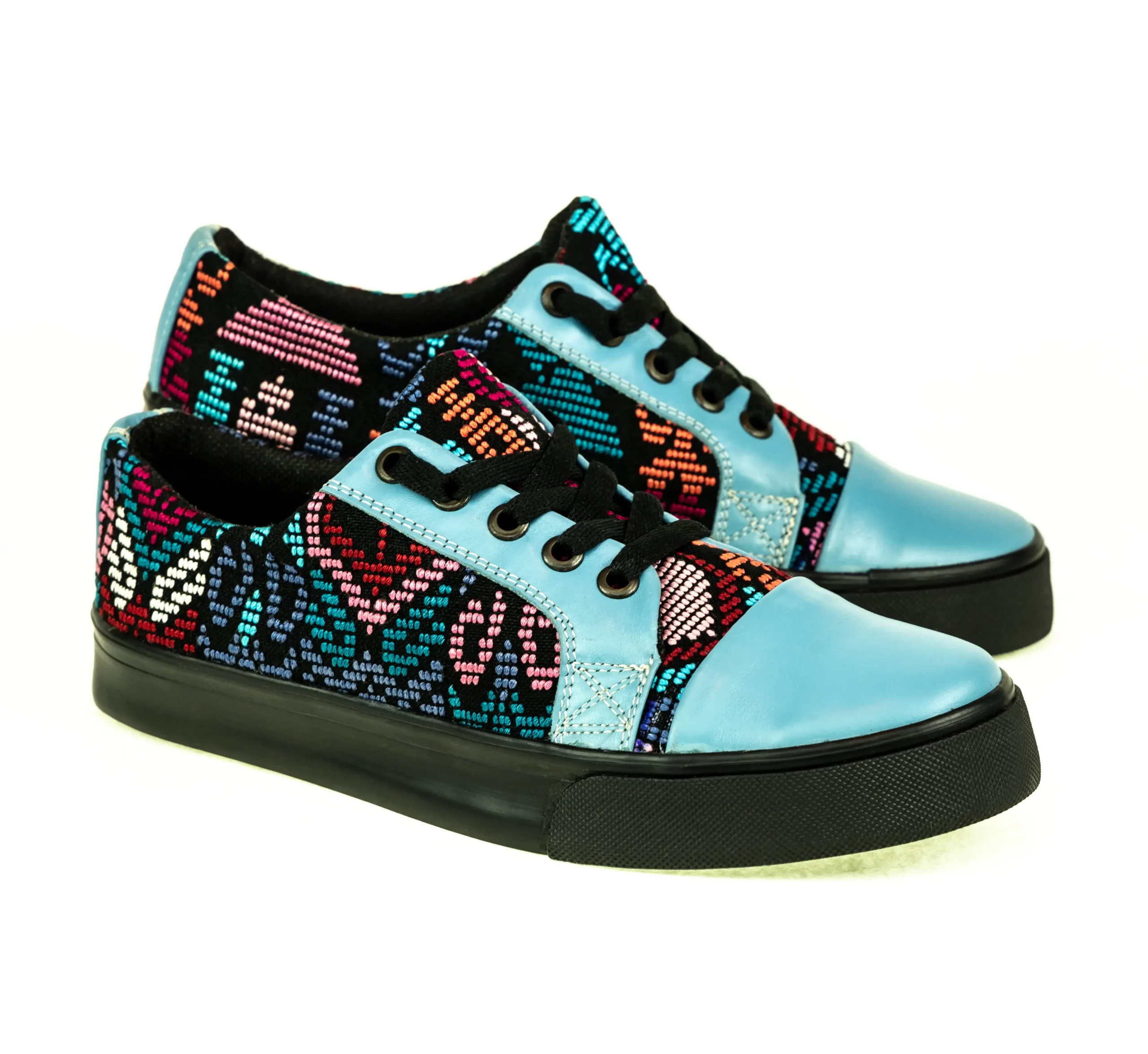 Pieza única e irrepetible. Tenis de piel fusionados con auténtico textil maya tejido a mano en telar de cintura. Un diseño urbano y contemporáneo pensado para quienes valoran la moda consciente y buscan comodidad con un estilo inigualable. Al ser una obra artesanal, no existe otro par igual en el mundo. Si es tu talla, es tu destino.