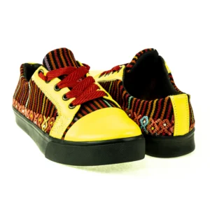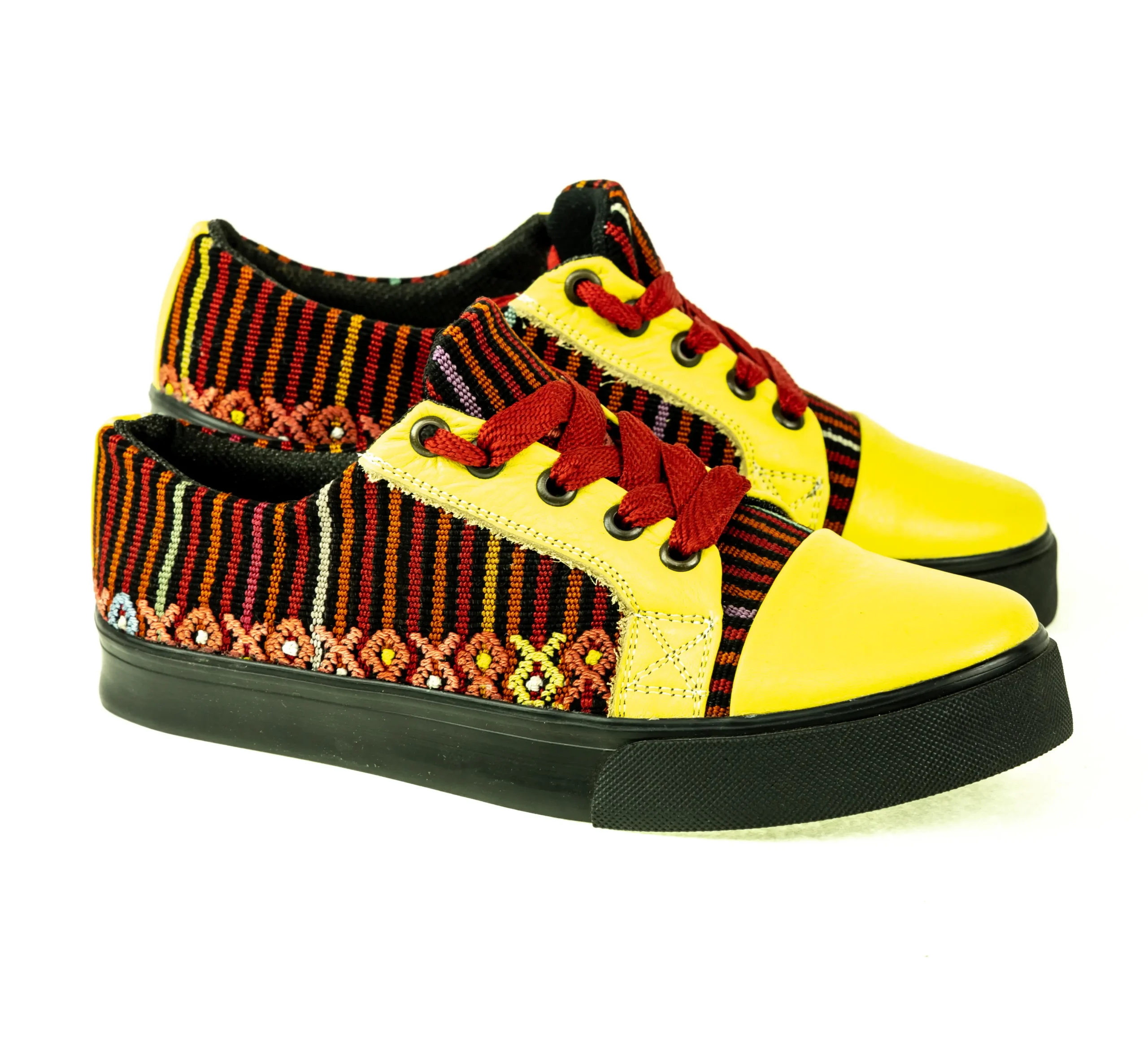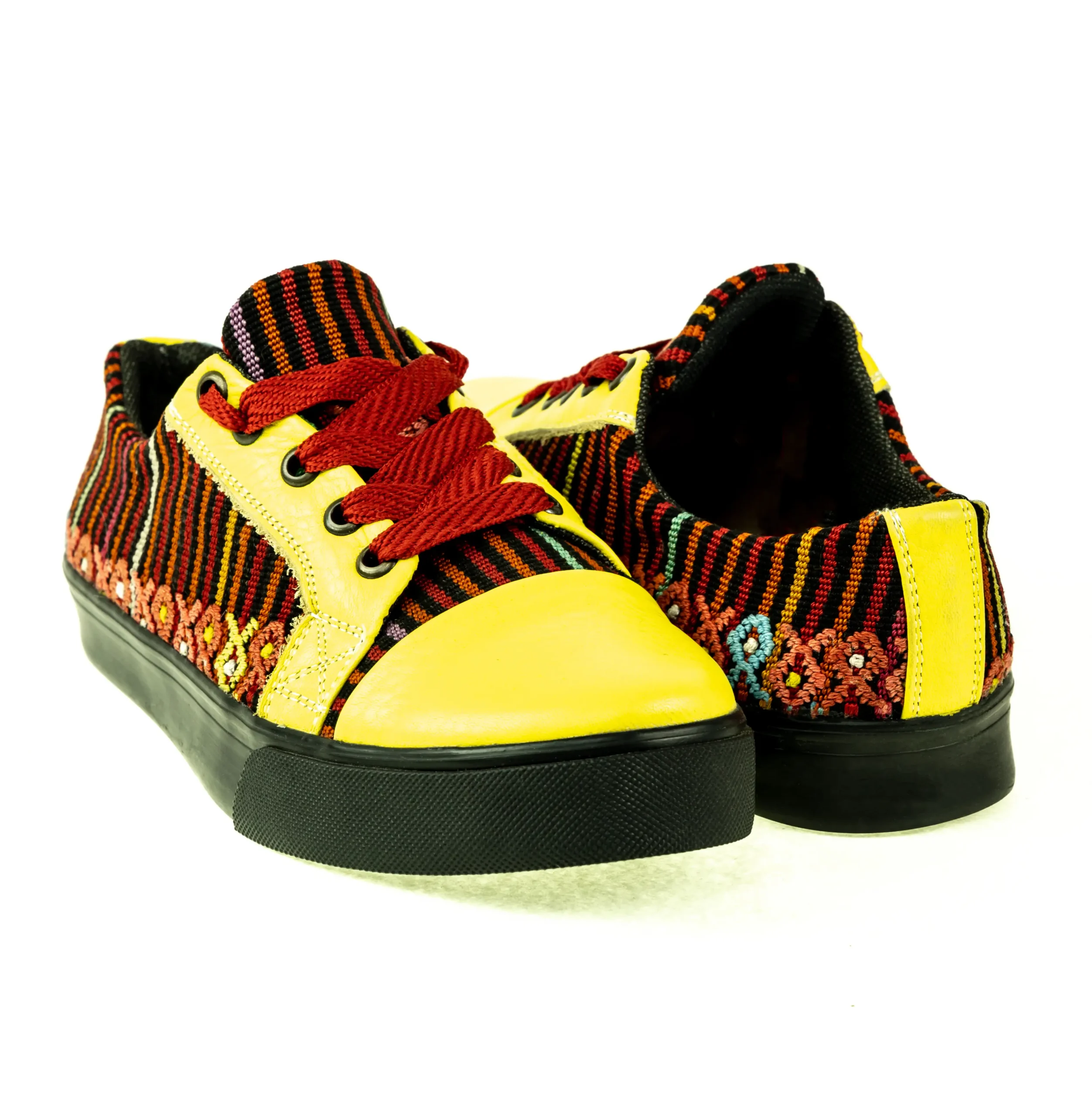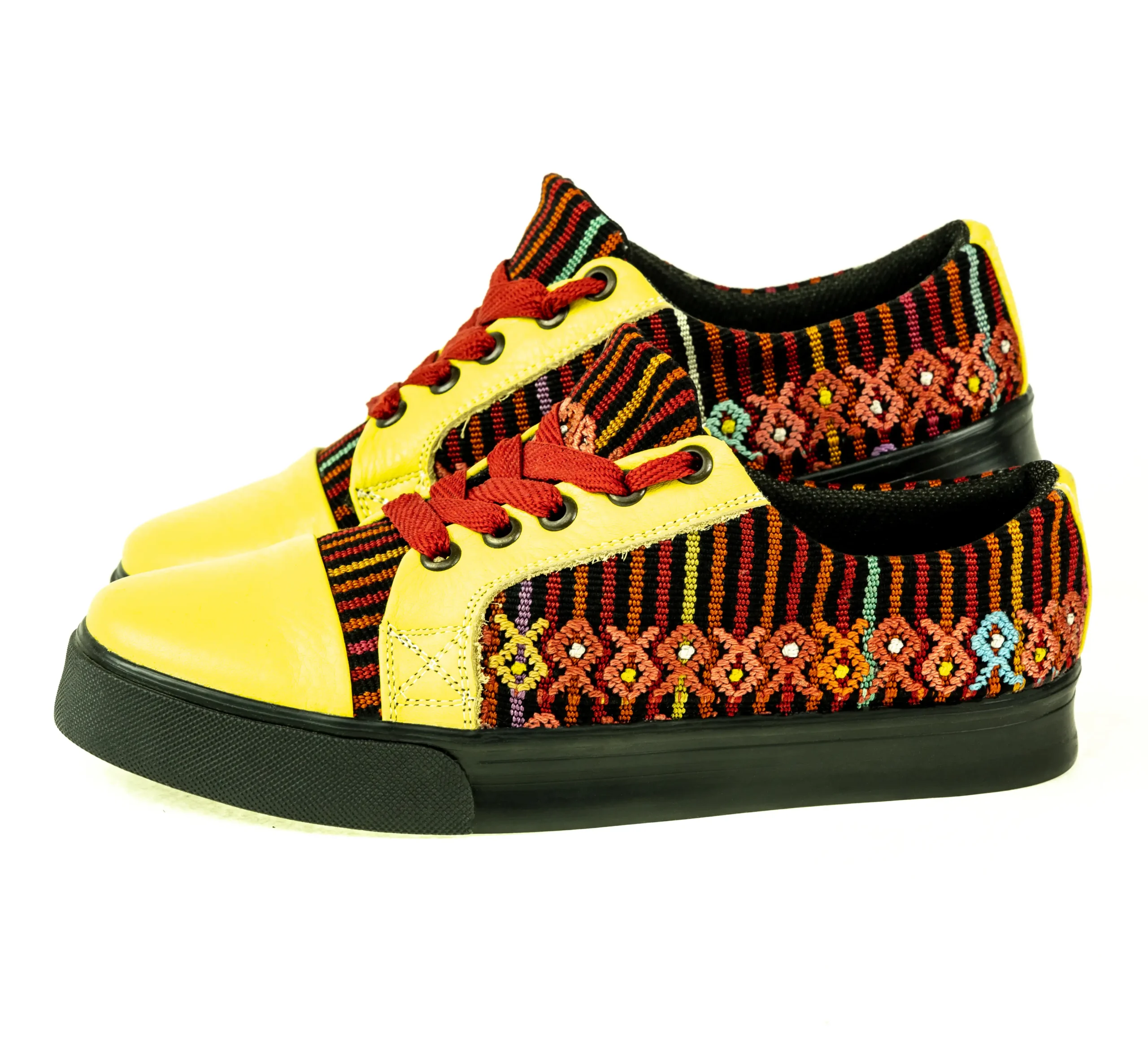 Pieza única e irrepetible. Tenis de piel fusionados con auténtico textil maya tejido a mano en telar de cintura. Un diseño urbano y contemporáneo pensado para quienes valoran la moda consciente y buscan comodidad con un estilo inigualable. Al ser una obra artesanal, no existe otro par igual en el mundo. Si es tu talla, es tu destino.