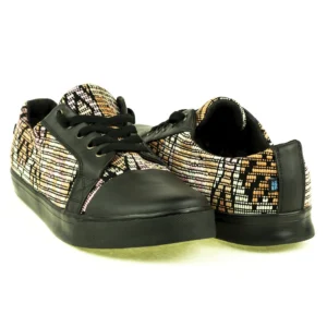 Pieza única e irrepetible. Tenis de piel fusionados con auténtico textil maya tejido a mano en telar de cintura. Un diseño urbano y contemporáneo pensado para quienes valoran la moda consciente y buscan comodidad con un estilo inigualable. Al ser una obra artesanal, no existe otro par igual en el mundo. Si es tu talla, es tu destino.