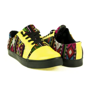 Pieza única e irrepetible. Tenis de piel fusionados con auténtico textil maya tejido a mano en telar de cintura. Un diseño urbano y contemporáneo pensado para quienes valoran la moda consciente y buscan comodidad con un estilo inigualable. Al ser una obra artesanal, no existe otro par igual en el mundo. Si es tu talla, es tu destino.