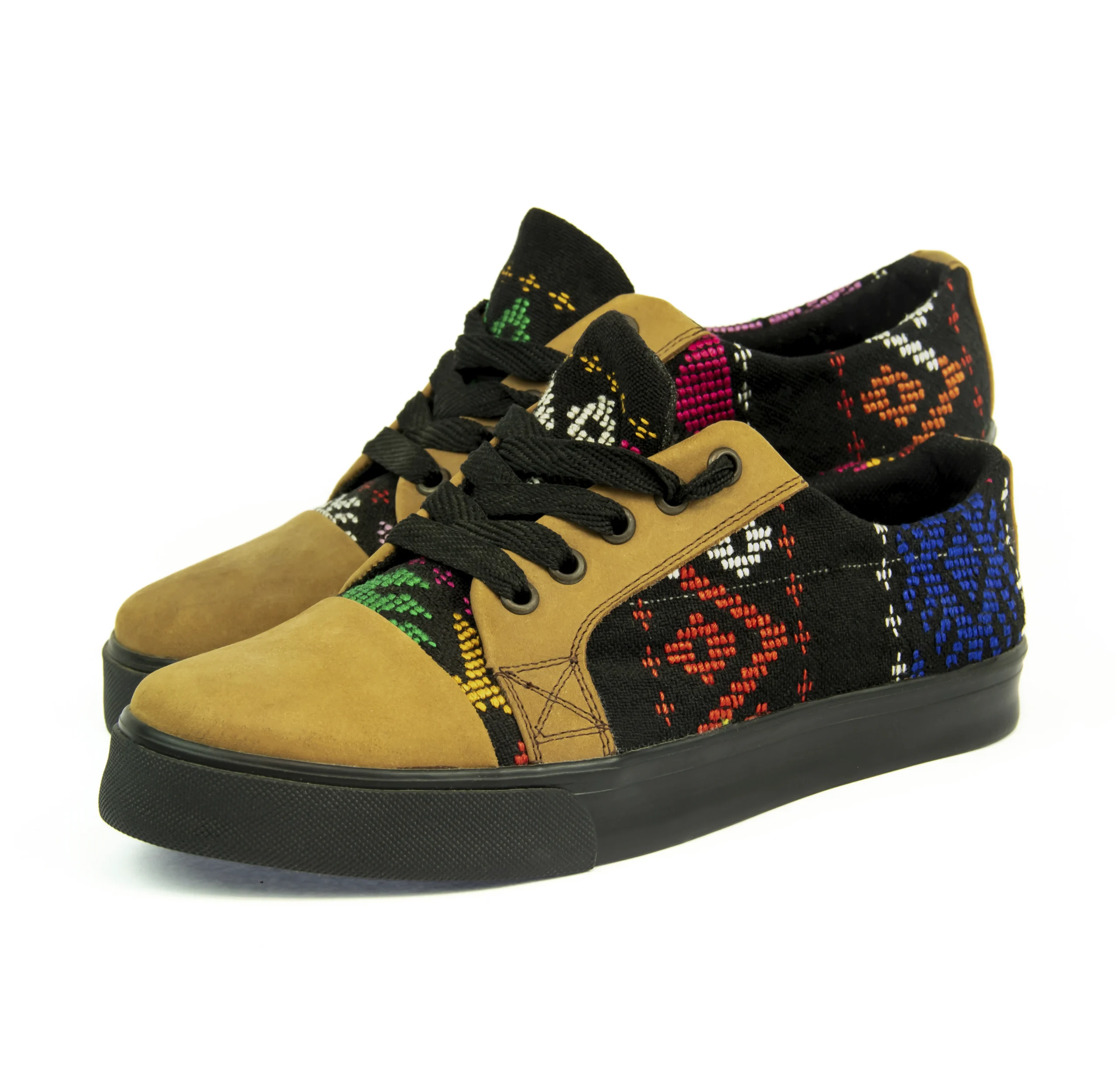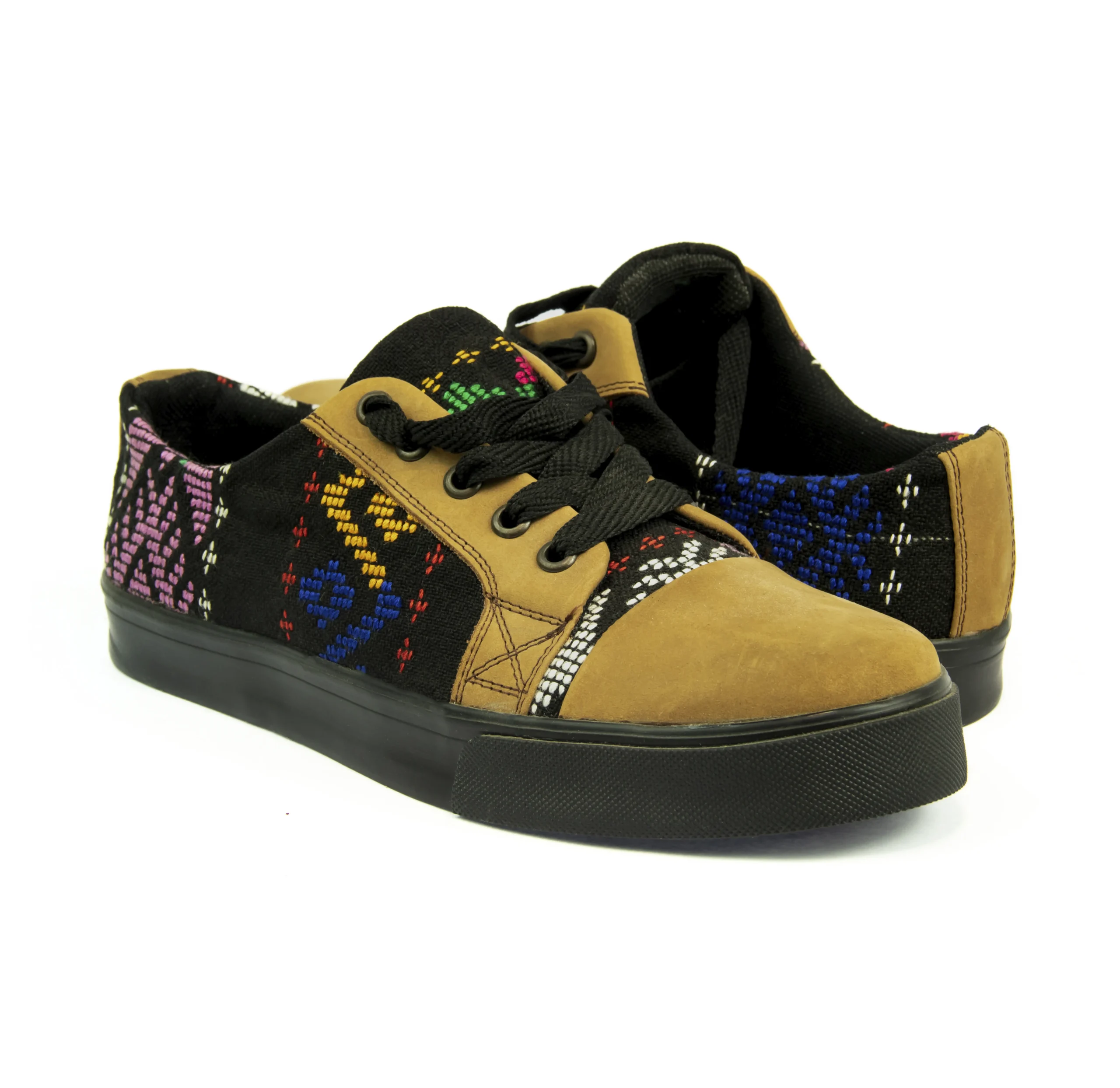 Pieza única e irrepetible. Tenis de piel fusionados con auténtico textil maya tejido a mano en telar de cintura. Un diseño urbano y contemporáneo pensado para quienes valoran la moda consciente y buscan comodidad con un estilo inigualable. Al ser una obra artesanal, no existe otro par igual en el mundo. Si es tu talla, es tu destino.