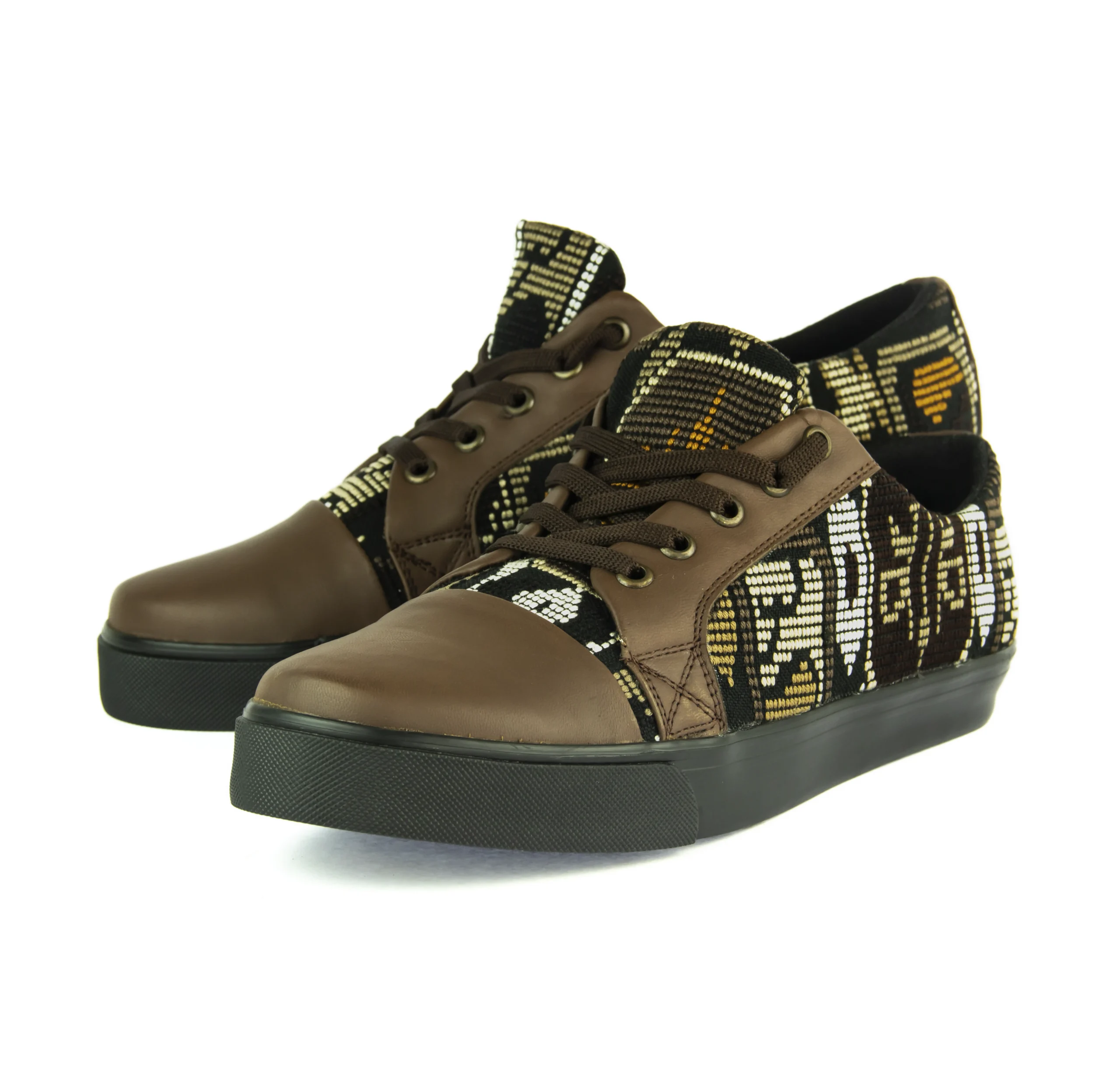 Pieza única e irrepetible. Tenis de piel fusionados con auténtico textil maya tejido a mano en telar de cintura. Un diseño urbano y contemporáneo pensado para quienes valoran la moda consciente y buscan comodidad con un estilo inigualable. Al ser una obra artesanal, no existe otro par igual en el mundo. Si es tu talla, es tu destino.